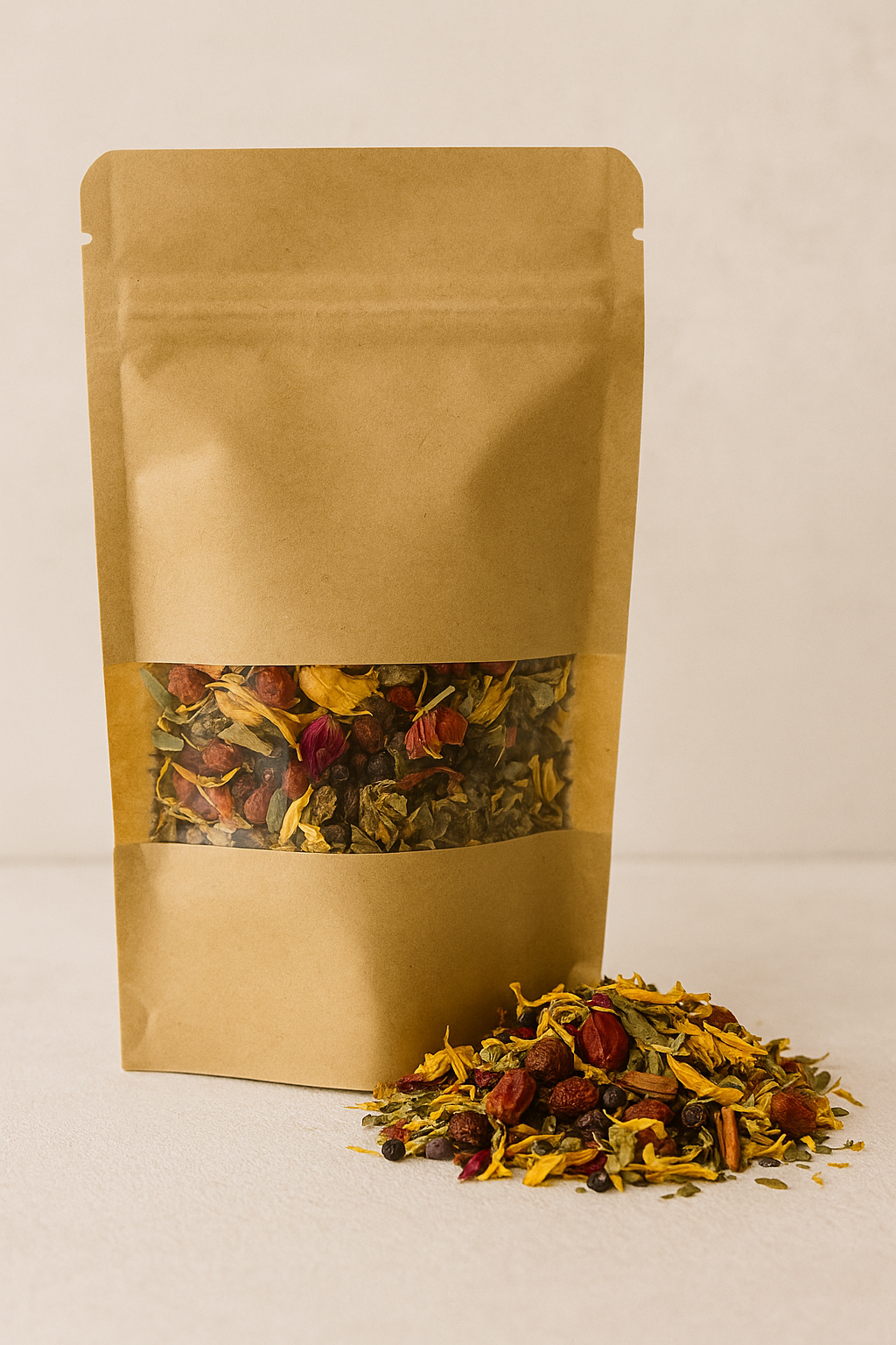 Ingredients: Hawthorn berry, ginger, cinnamon, tulsi, hibiscus, rose, elderberry, calendula