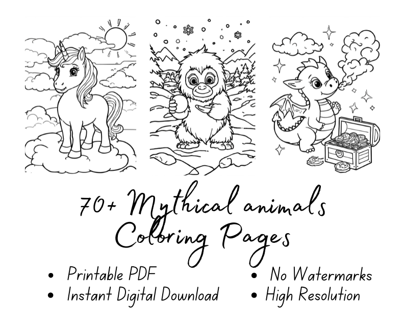 Unleash imagination with 70+ mythical animal coloring pages! Dragons, unicorns, griffins, and other magical creatures spark creativity and storytelling. Perfect for kids who love fantasy, these pages combine artistic fun with imaginative play.