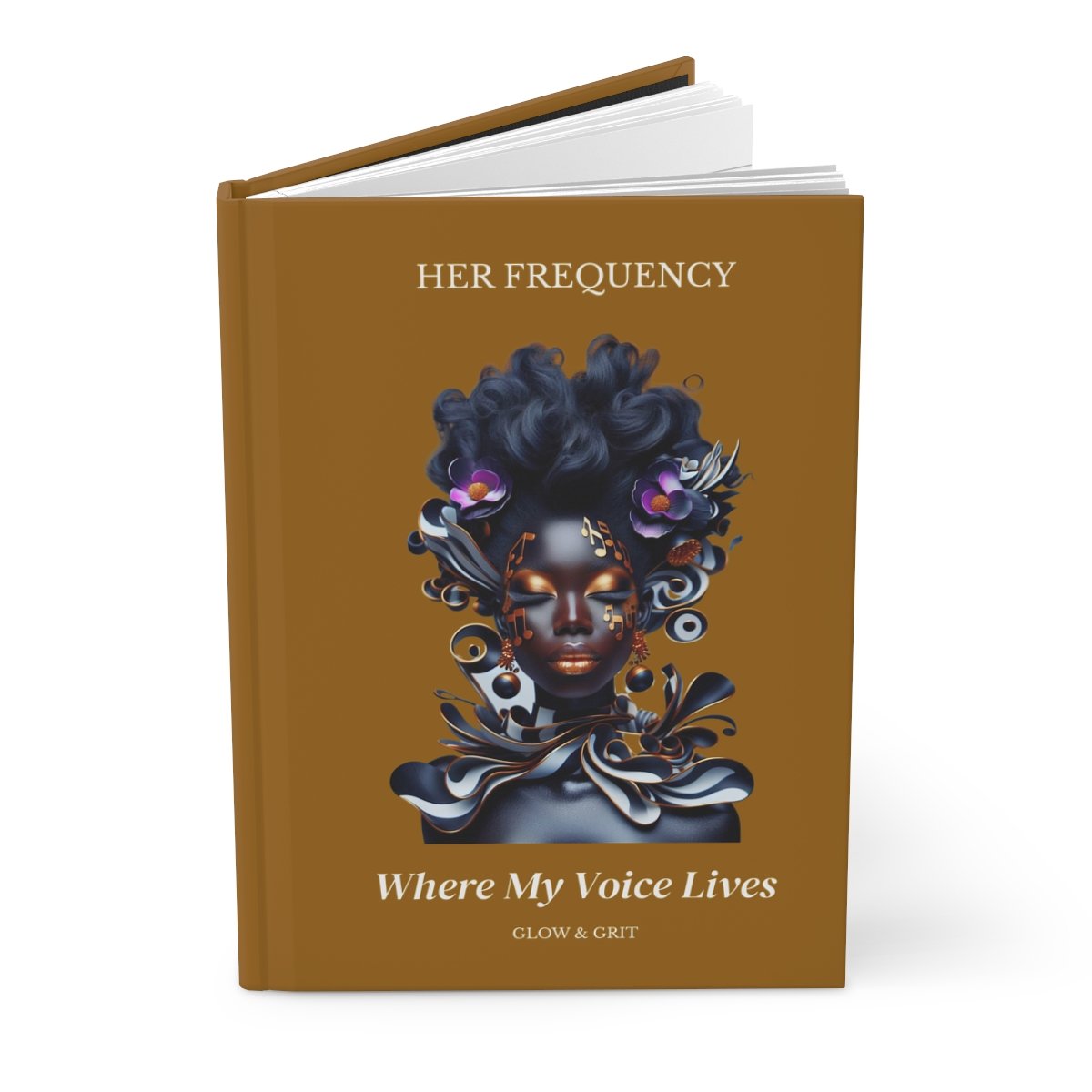 Wrapped in a rich Molten Bronze matte finish and featuring original Glow & Grit artwork, Where My Voice Lives invites you to slow down and write with confidence. The warm bronze tones and subtle metallic accents create a grounded, powerful presence that supports honest reflection and expressive thought.
