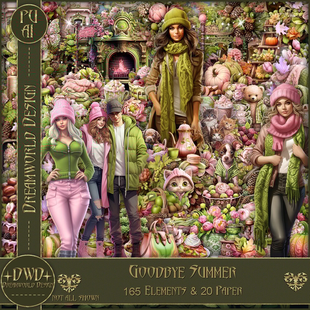 This Scrap Kit *Goodbye Summer* is a tagger-size kit with 164 elements & 20 papers.