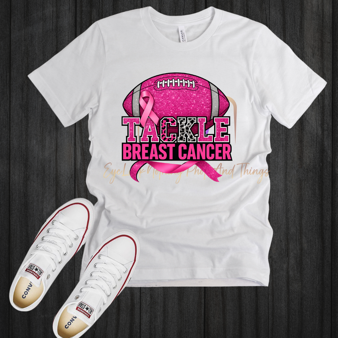 Our Tackle Breast Cancer T-Shirts combine the love of football with the fight against breast cancer. Each bold design features powerful pink details, athletic flair, and supportive messages that remind everyone: together, we can tackle this.