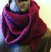 Hug Wings is a reversible wrap that embraces your neck or drapes off your arms. This quirky shape is a quick knit, requiring only simple stockinette knitting, yarn overs, decreasing, and other basic skills. Use your crochet skills for an optional single crochet edging or add your own knit one as a finishing touch.