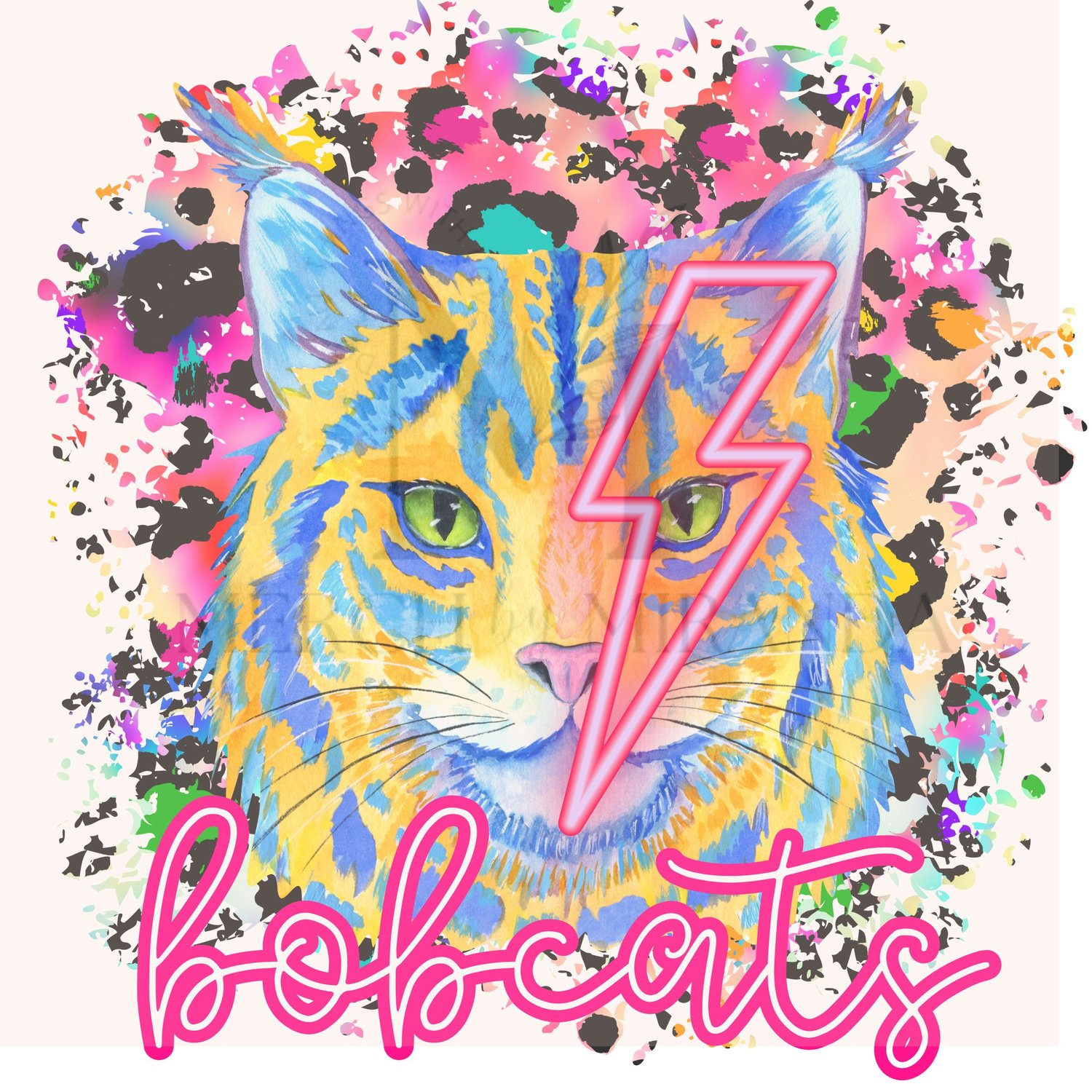 Bobcat Mascot - Bobcats - Neon Lightning Bolt - School Spirit - Digital Download - Leopard Print