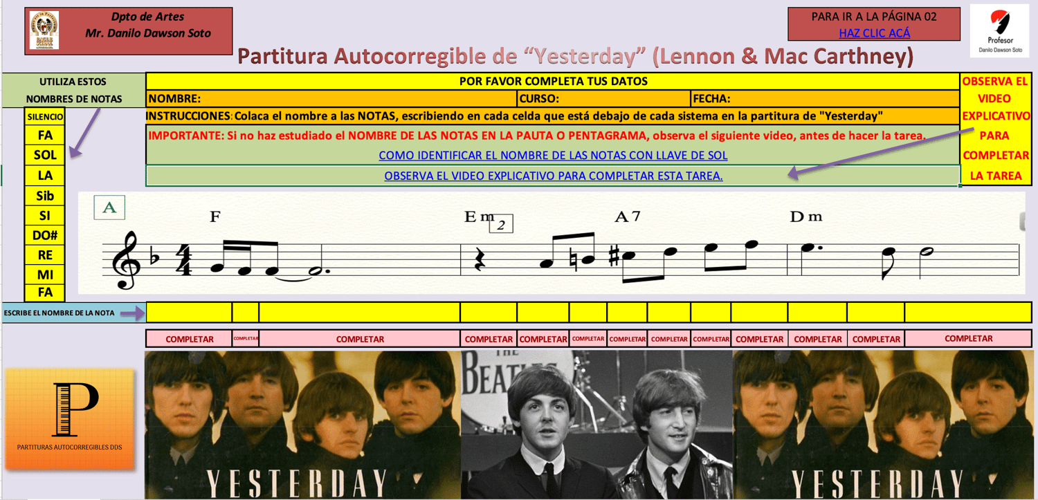 PARTITURA AUTOCORREGIBLE DE LA CANCIÓN YESTERDAY (Lennon & Mac Carthney)