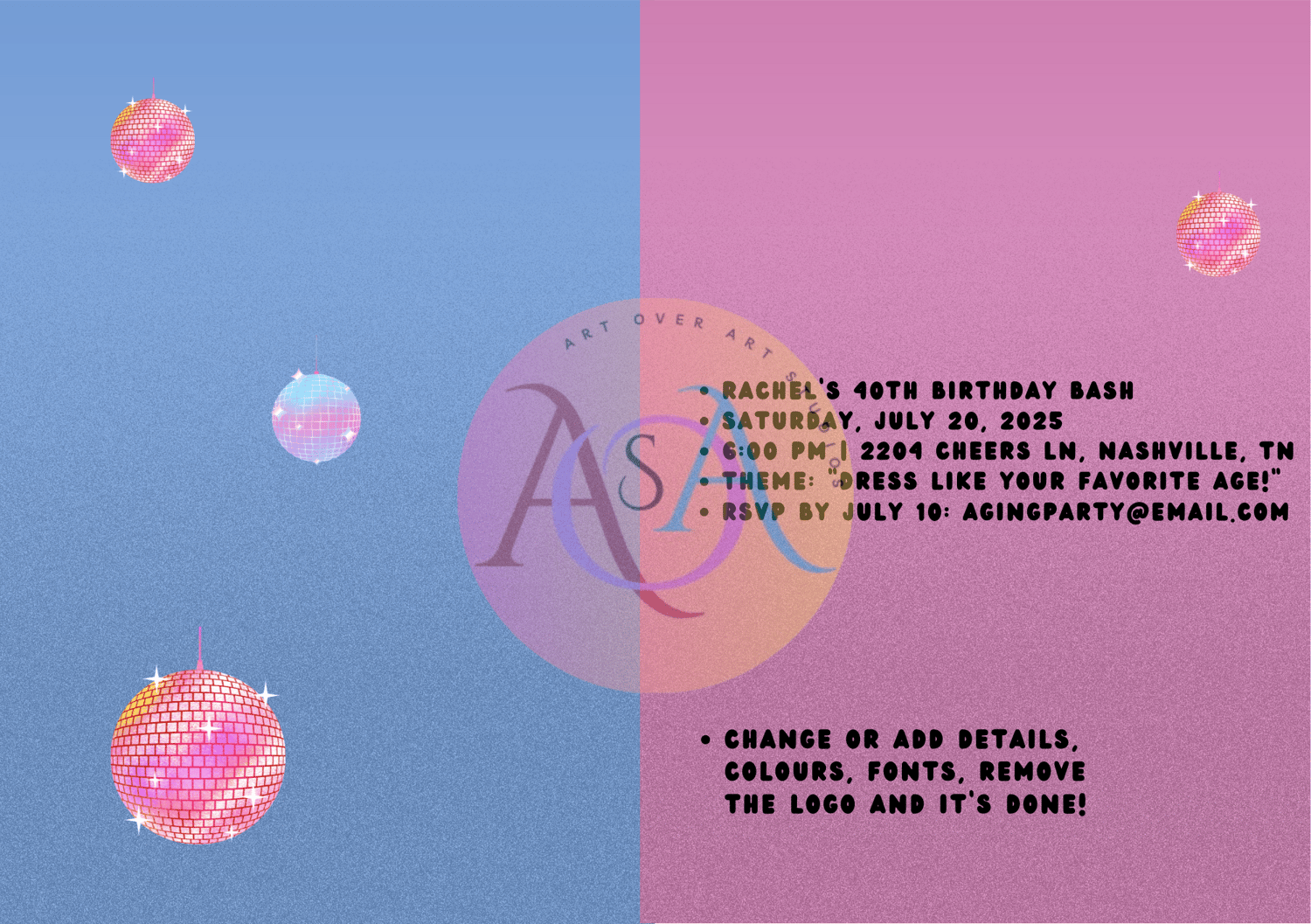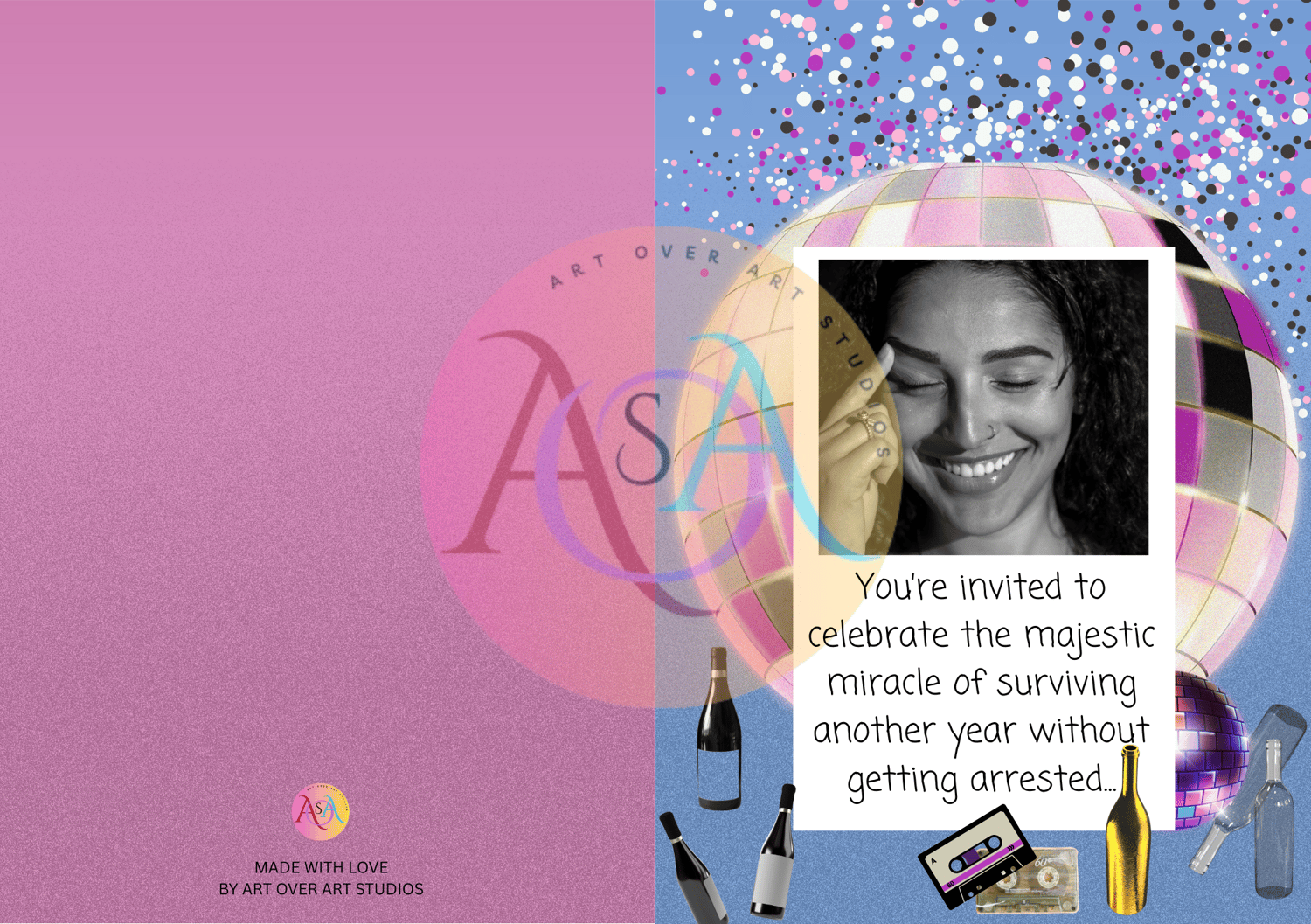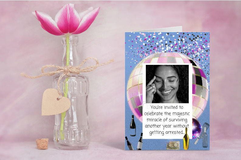 ✨ A hilarious disco-themed invitation (“celebrating survival”)