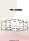 - 18 Table signs to welcome your guests, present food , favors ... and much more also available in 3 colors.