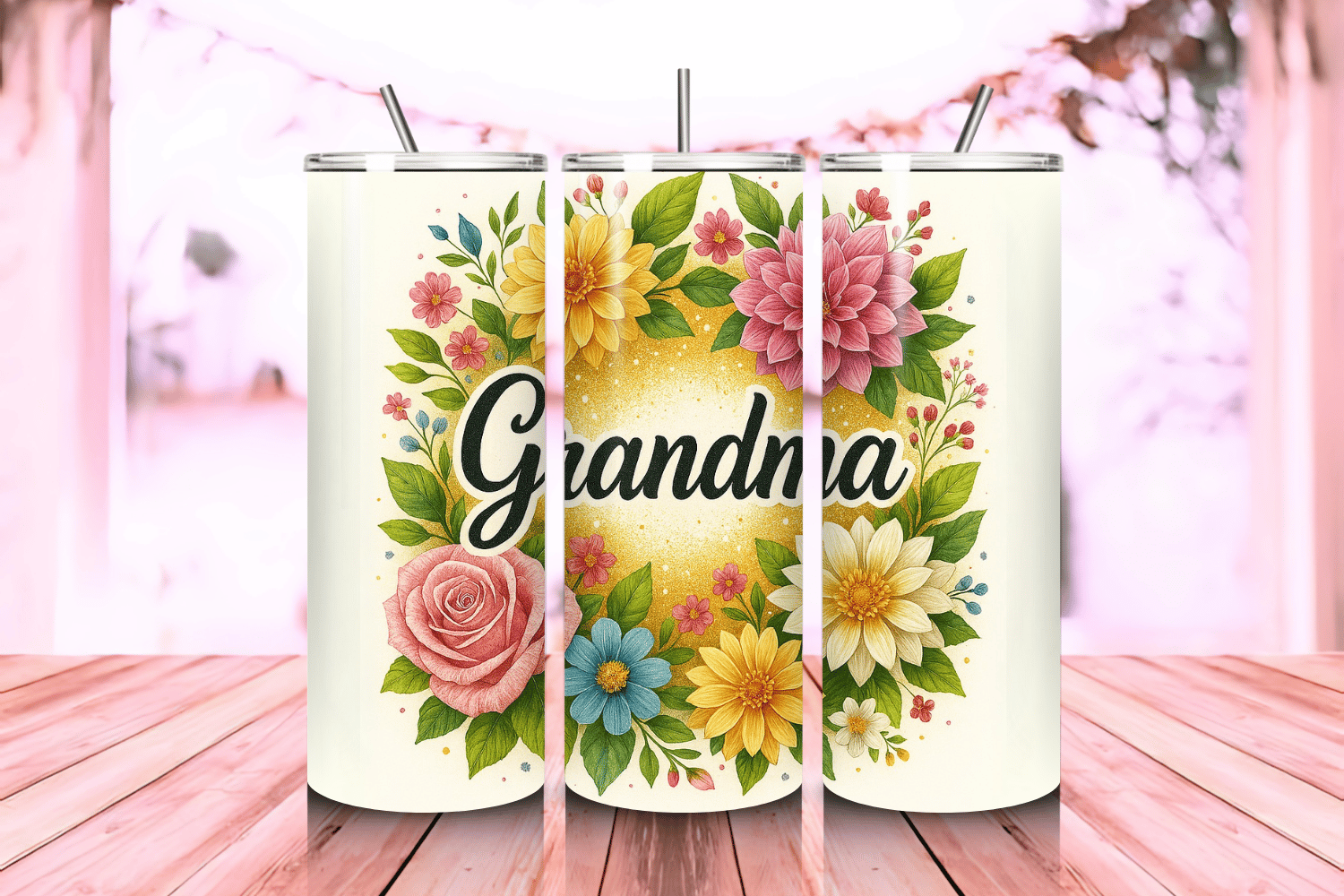 Grandma Women’s Floral Tumbler Wrap PNG – 20oz Skinny Sublimation Design with Beautiful Flower Illustrations & Loving Quote – Perfect Gift for Grandmothers – 300 DPI Instant Digital Download
