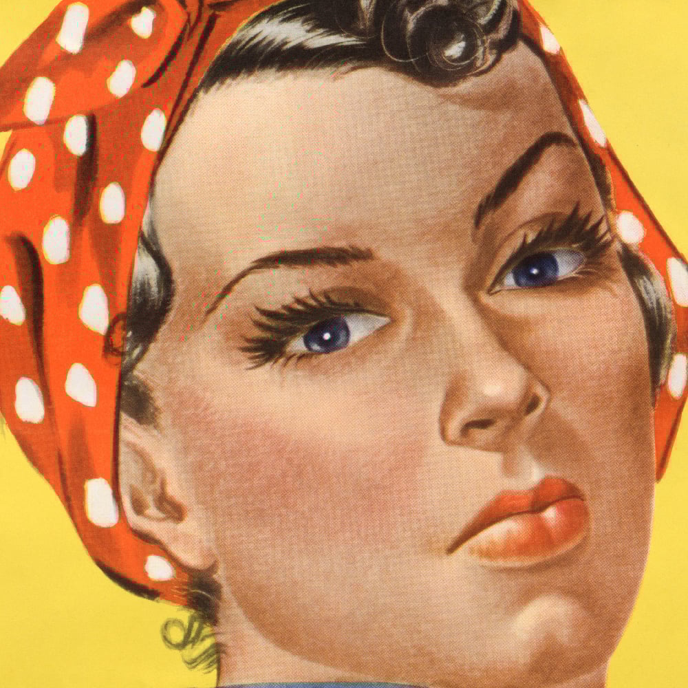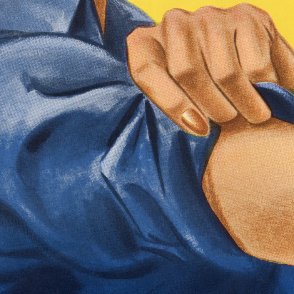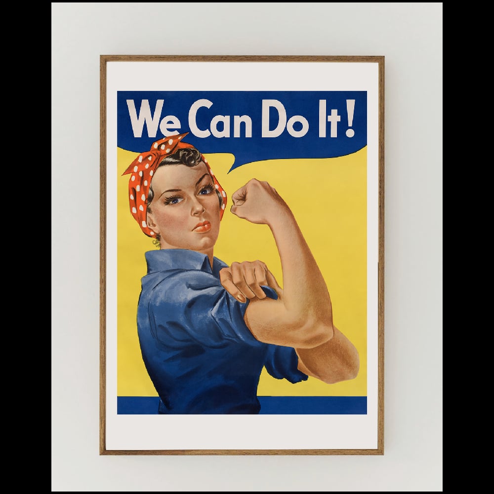 "We Can Do It!", also called "Rosie the Riveter" after the iconic figure of a strong female war production worker (1942-1945) lithograph poster by J. Howard Miller.
