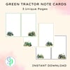 💌 Your 6 unique note cards will be delivered on 3 PDF pages. These are the cutest blank Green Tractor note papers. Order now!