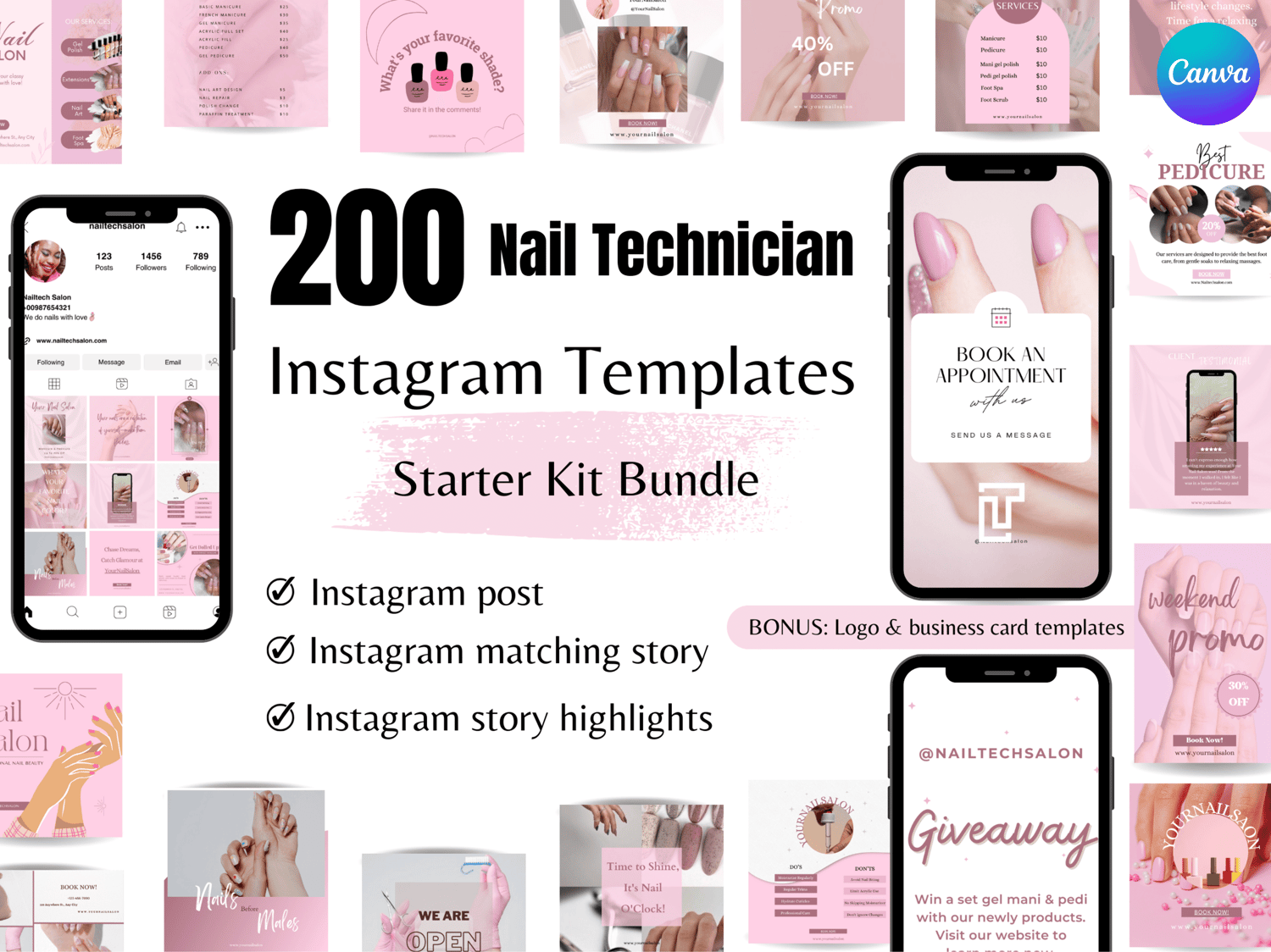 Are you ready to transform your nail salon's Instagram game? Introducing our premium collection of 150 Instagram Templates Nail Tech Starter Kit Bundle, specially crafted for nail salons seeking to dazzle their followers!