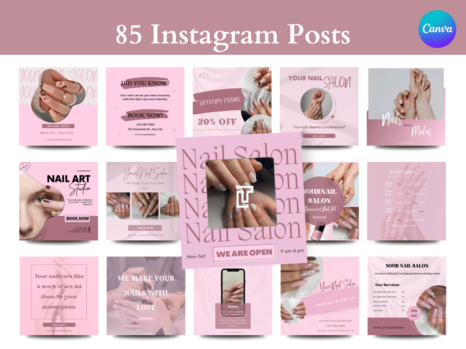2. Instagram Post Templates: Make a stunning statement with our collection of 60 Instagram post templates. From showcasing your nail art masterpieces to promoting special offers, each template is designed to seamlessly integrate with your brand and effortlessly grab the attention of your followers.