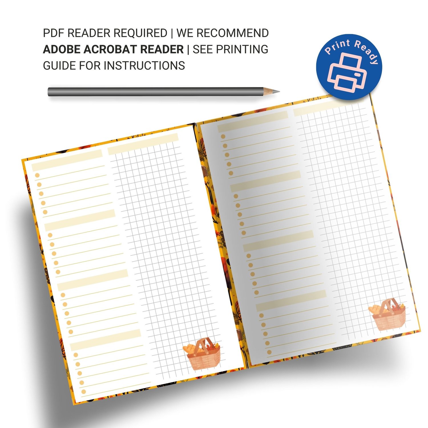 Lists & Notes Planner Insert - Autumn Theme - Printable Digital Download PDF