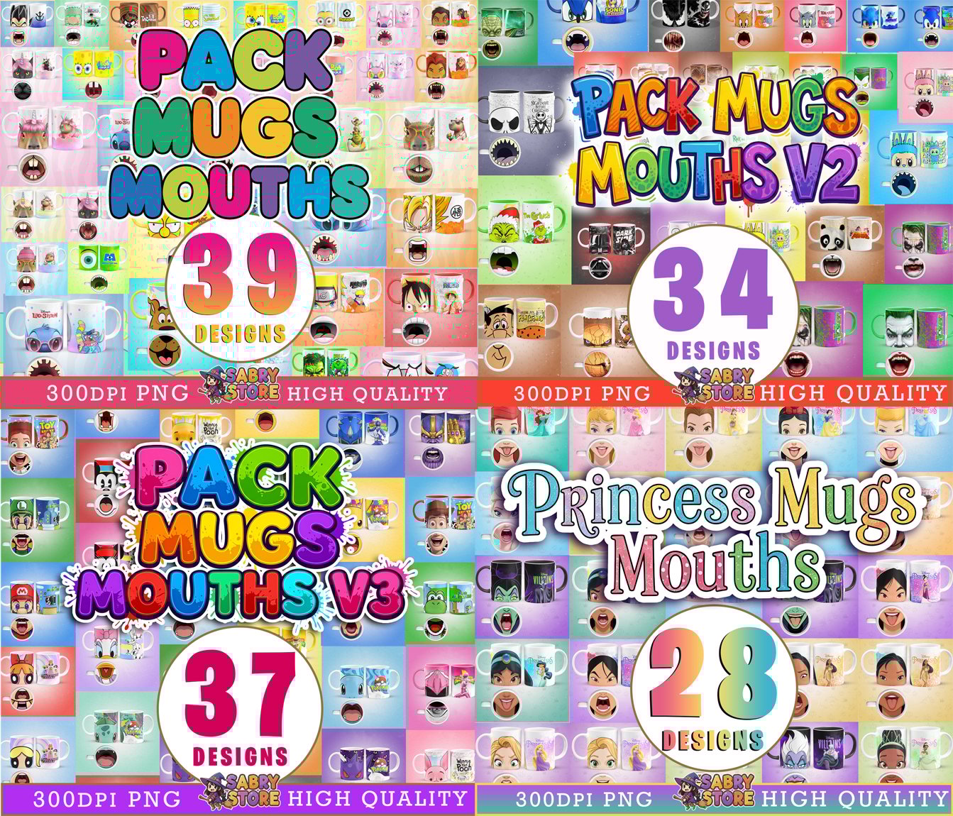 130+ Mega Mug Designs with Cartoon Mouths from Series, Movies and Video Games
