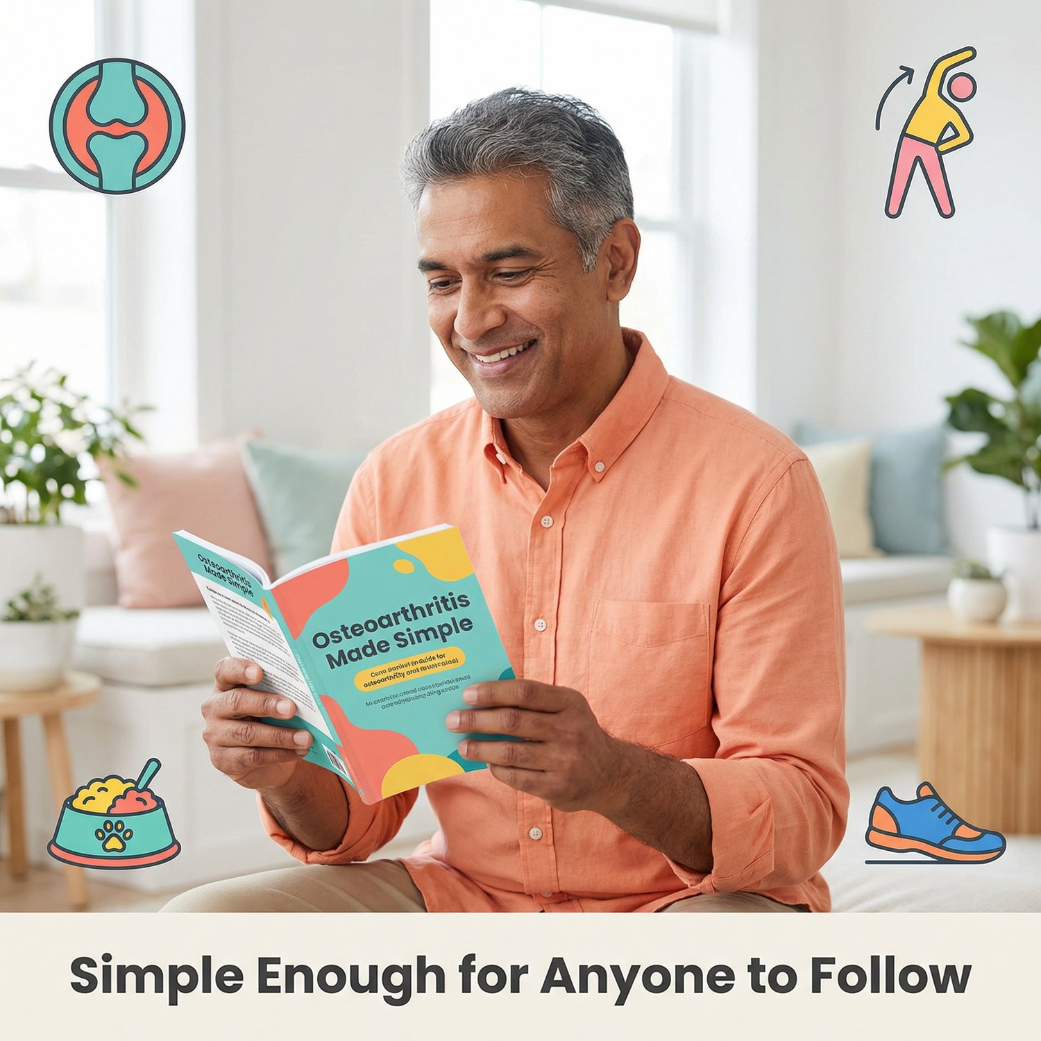 Most osteoarthritis advice is scattered, confusing, or written in medical language that feels impossible to follow. This guide is different because it brings everything together—diet, strength, posture, flexibility, and footwear—into one simple, friendly system that anyone can understand. Instead of guessing what to do, you get clear steps, clear illustrations, and a daily routine that feels doable, not overwhelming. It’s a lifestyle blueprint, not a medical textbook.