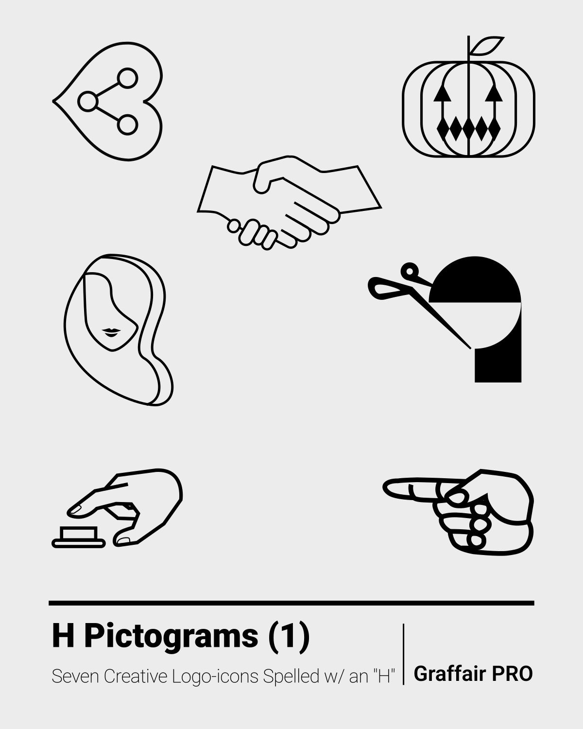 H Pictograms (1): The 1st set of 7 pictograms, each beginning with an "H".