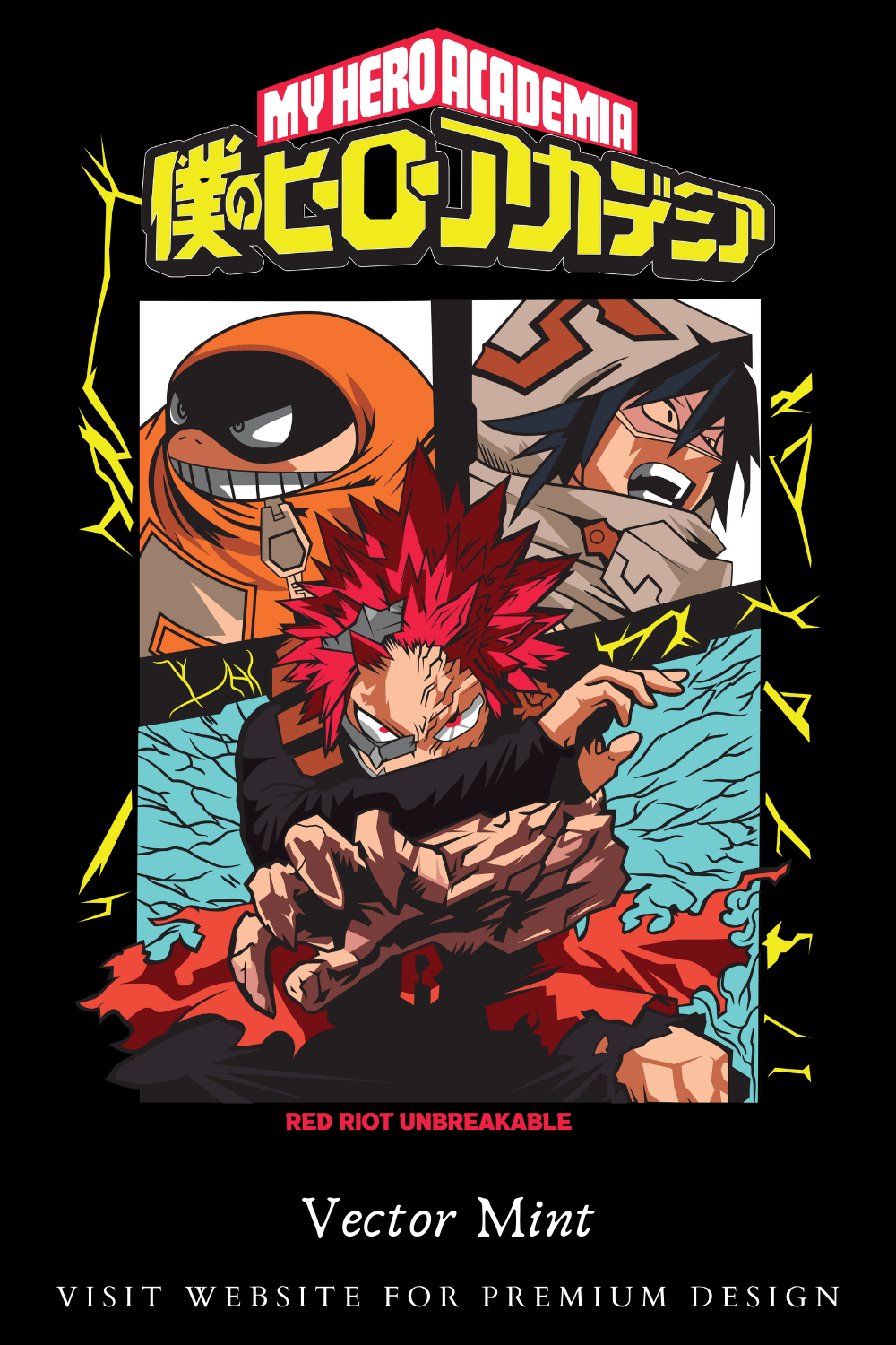 My Hero Academia Red Riot Unbreakable Anime Streetwear T-Shirt Design PNG Eijiro Kirishima Graphic