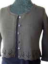 Anthea (pronounced ahn-THEE-ah), the Greek word for “flowery,” was used as a by-name of the goddess Hera. In the 17th century English poets used the name Anthea to symbolize spring. Here, Anthea is a feminine little sweater whose only decorations are the scallops and the row of blossoms along the bottom hem. With ¾-length sleeves and cropped length it’s a simple thing to throw over your light weight tops when summer’s cool evening winds begin to stir.