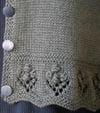 This nearly seamless sweater is knit from the hem up in one piece to the armholes. After shoulders are seamed, sleeve stitches are picked up around the armhole. Sleeve caps are worked in short rows, then sleeves are worked in the round to the hem. Simple garter stitch neckline and button bands finish the garment.