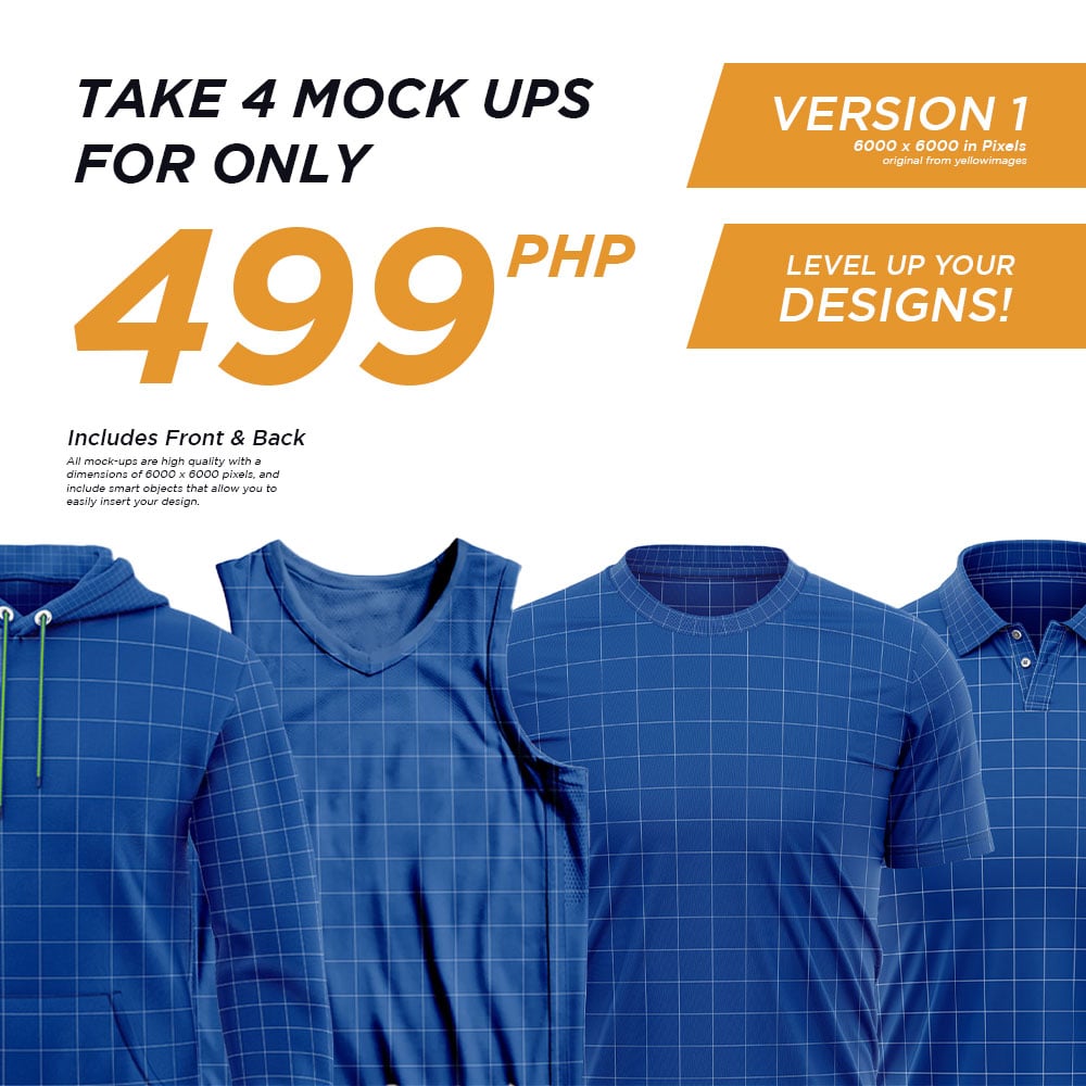 Transform your presentations with our exclusive offer: Get 4 captivating mock-ups for just 499 Pesos or $9! Each set includes front and back designs for the following items: