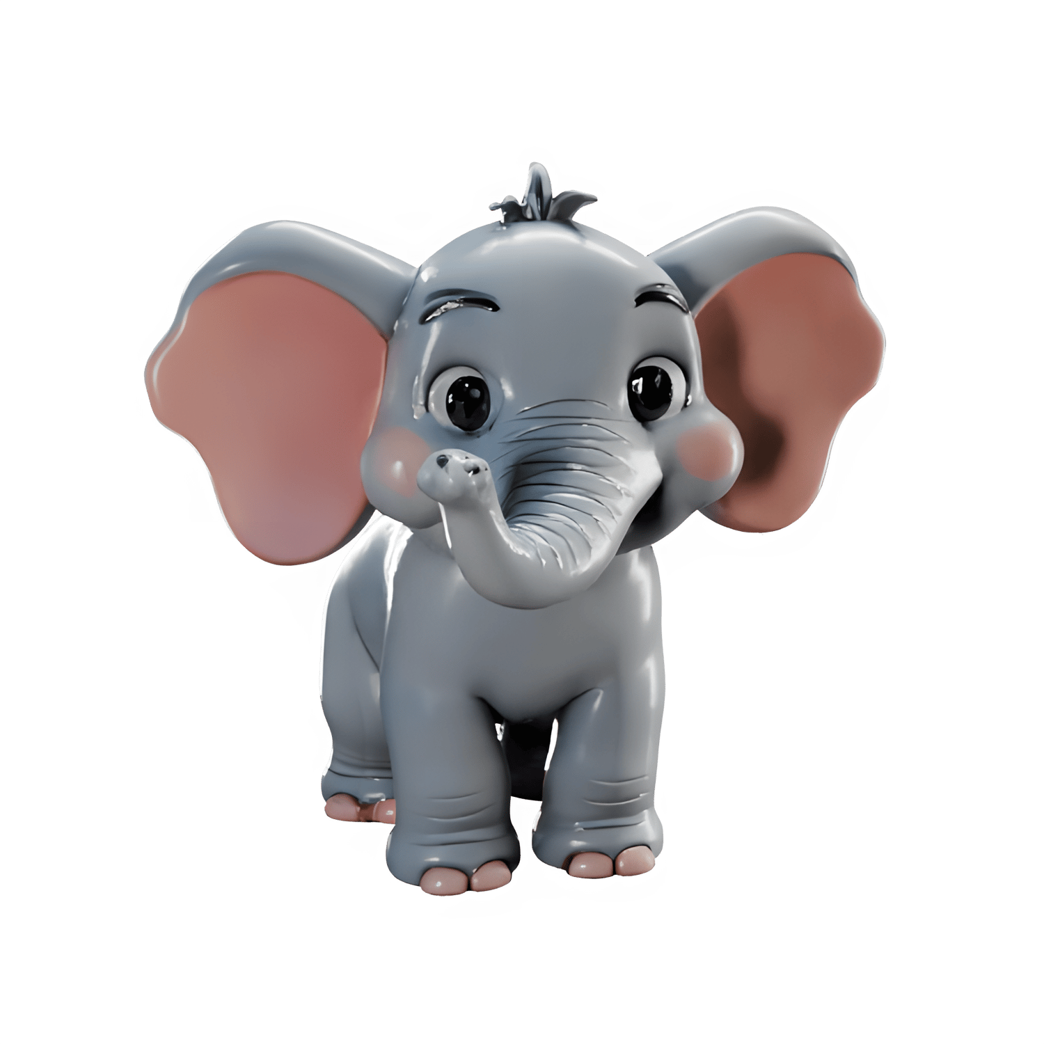 - Image 1 shows a cute baby elephant with rounded features, large expressive eyes, and pink-tinted ears - perfect for nursery decorations