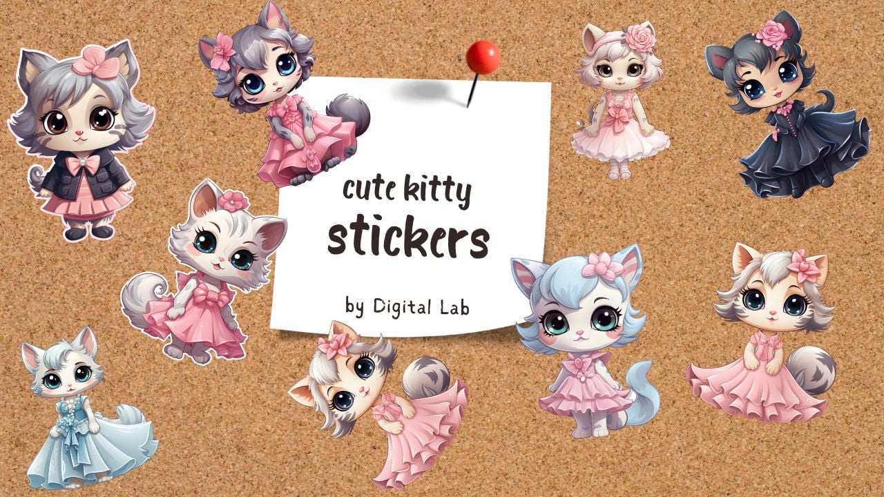 Kitty in Dressed – Cute Kitty in Dress Stickers (Digital PNG Pack)