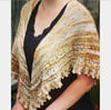 This shawl is knit from superwash wool, and should be handwashed and laid flat to dry to preserve its shape.