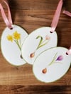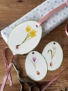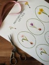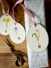 These spring gift tags feature tulip, crocus and daffodil bulbs. The sheet holds two each of the three designs. They have been hand drawn by me using watercolour pencils. They also look sweet hanging on an Easter branch or to decorate an Easter basket.