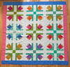This queen size quilt will cover your bed in blossoms! It features bold, large modern floral blocks made with traditional piecing methods. Use a collection of fabrics in bright colors, or try soft colors to evoke a blooming meadow. Yardage is also listed for making this quilt with fewer colors. The pattern will guide you through making this quilt with diagrams and written instructions.