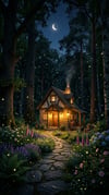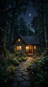 Enchanted Forest Cottage at Night
