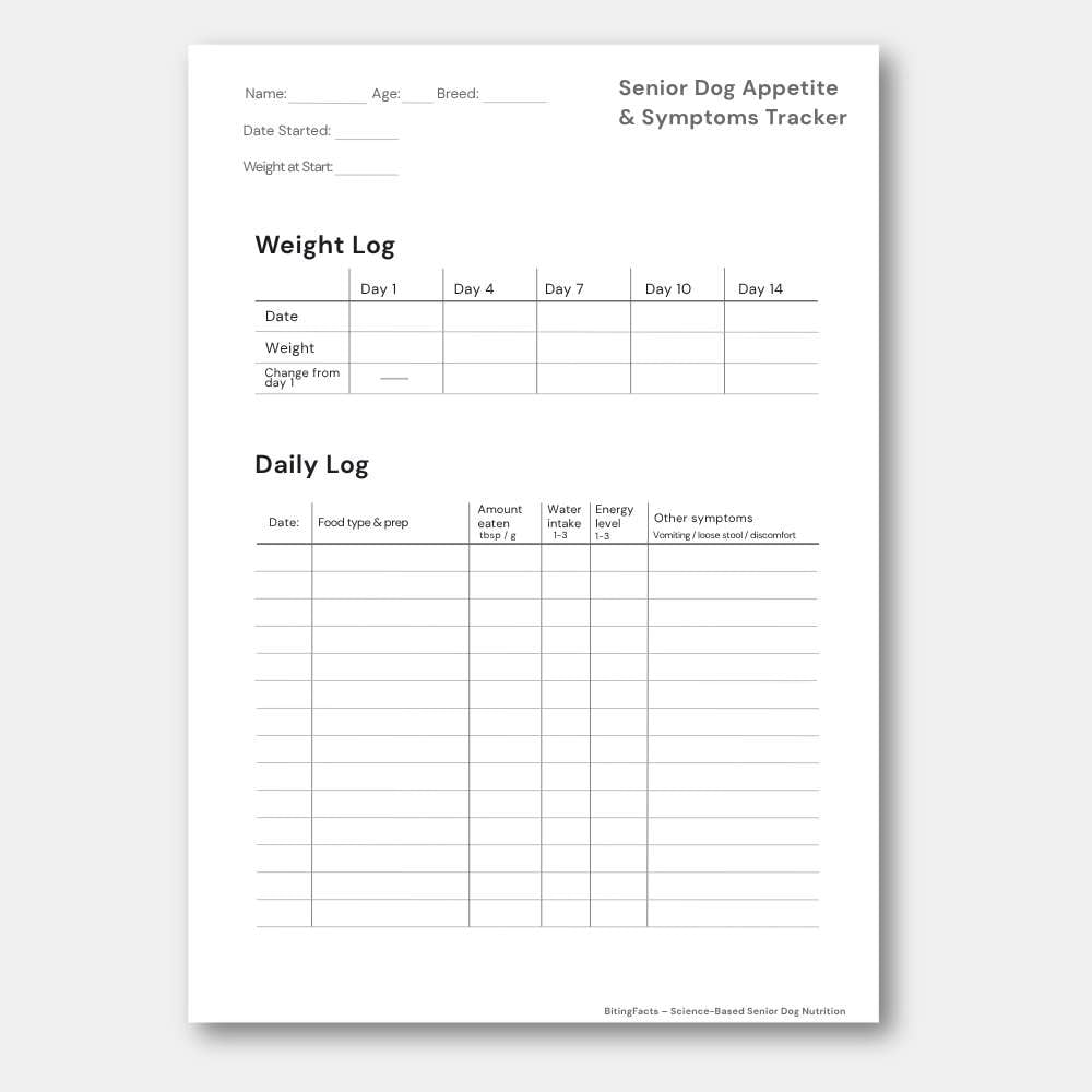 - Free bonus: Senior Dog Appetite & Symptoms Tracker — a printable daily log to track intake, weight, energy, and symptoms over 14 days