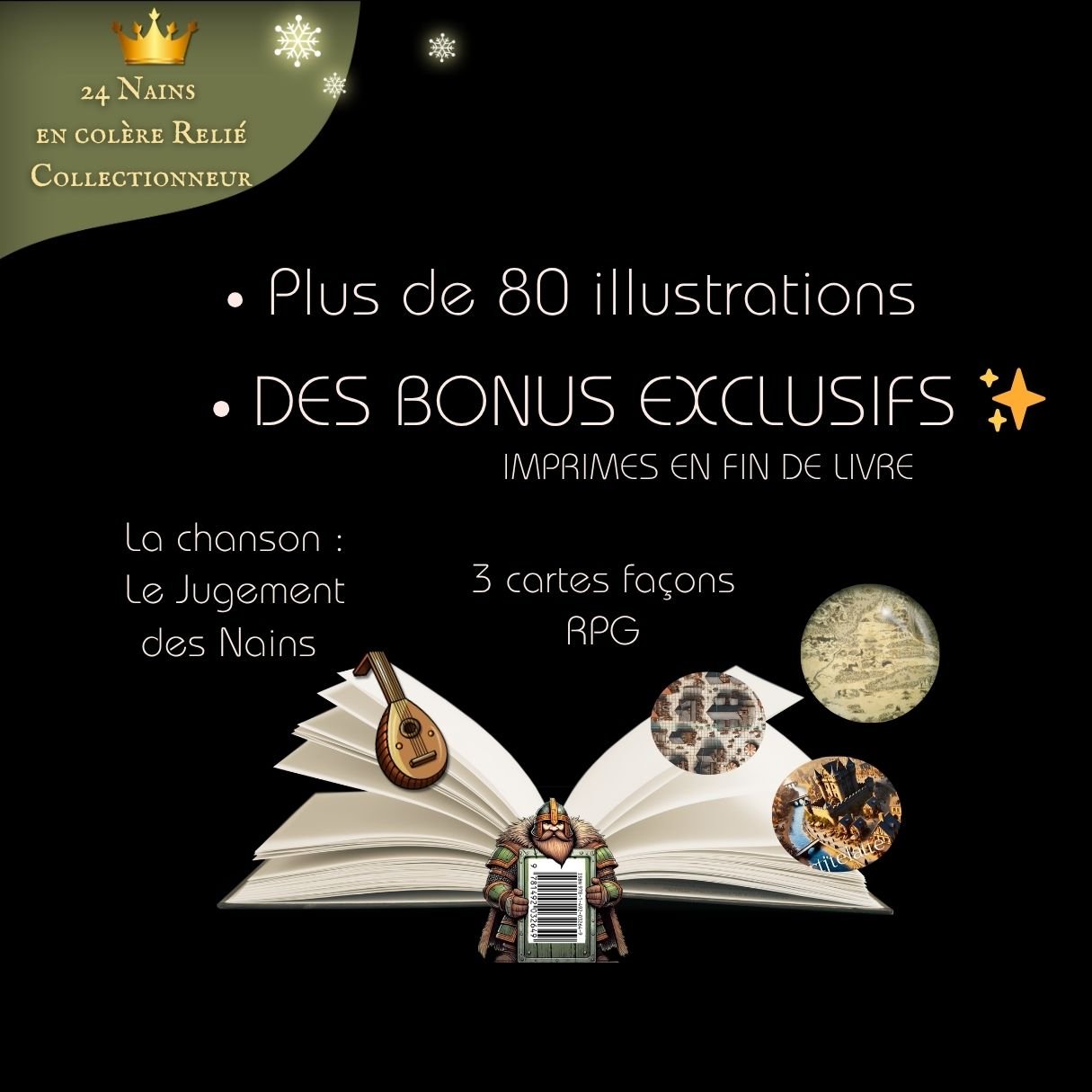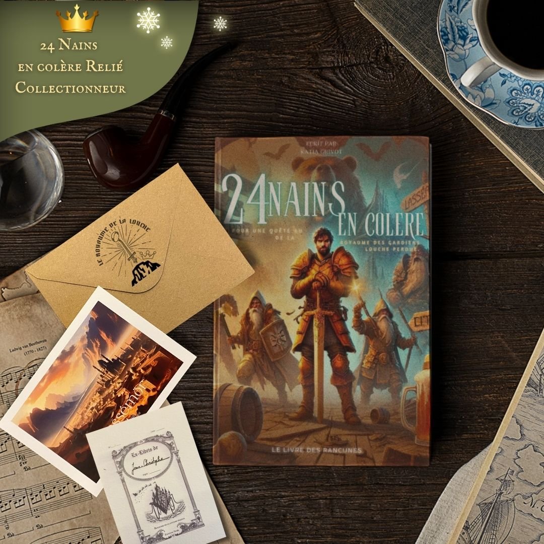 24 Nains en colère en édition reliée Spécial Noël prête à offrir: livre illustré de fantasy humoristique au royaume de la louche perdue, Bonus cadeau inclus : ex-libris nominatif, carte postale et embossage. Papier cadeau offert.