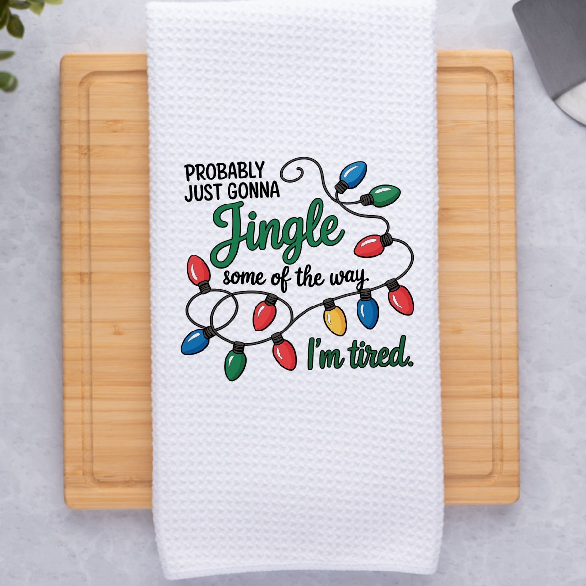 Probably Just Gonna Jingle Some Of The Way I'm Tired Christmas Funny Sarcastic Kitchen Dish Towel