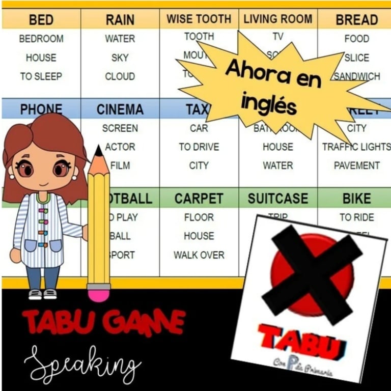 Incluye: 165 tarjetas para definir sin usar las palabras tabú a evitar, así como una hoja para imprimir en el reverso y una hoja con la plantilla en blanco, para poder crear más tarjetas personalizadas.
