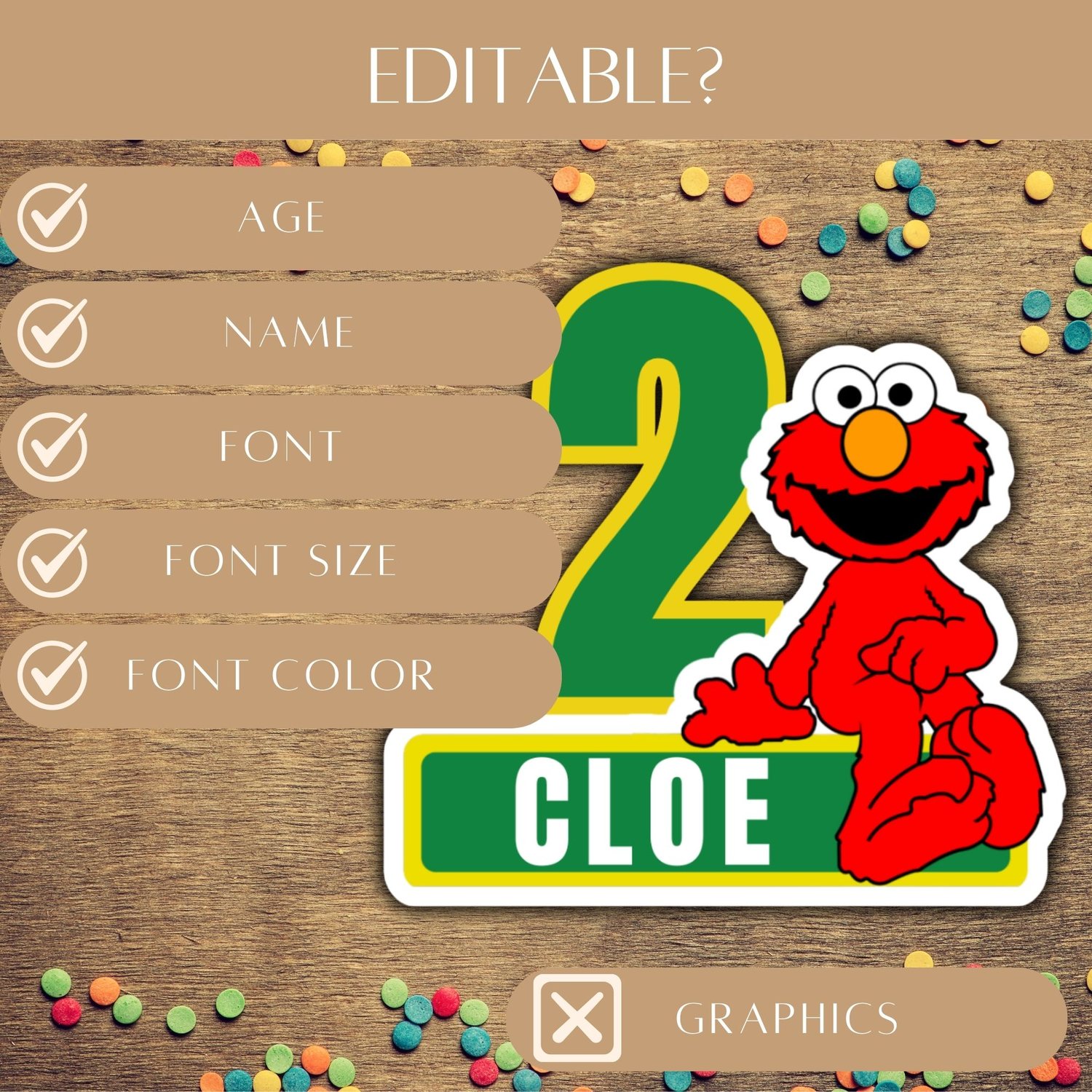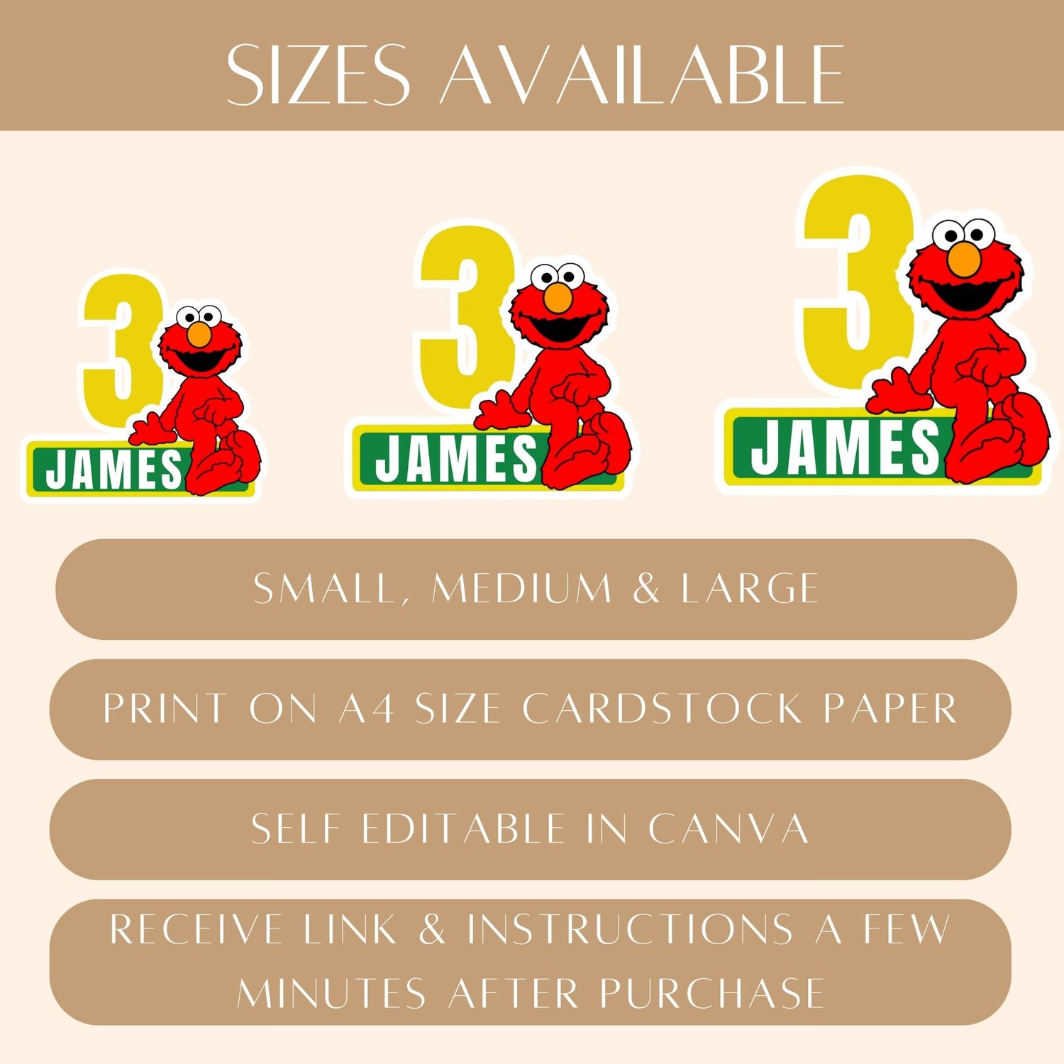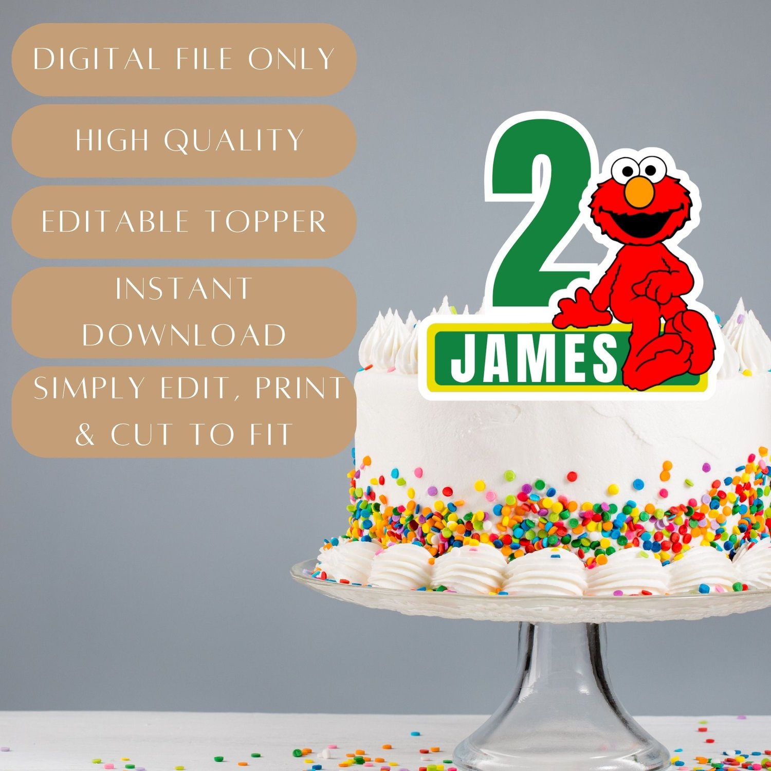 - Editable Elmo cake topper template (Canva link)