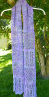 This pattern was written for beginning lace knitters to ‘get their feet wet’ learning to read different types of lace instructions in their written form. Charts have been added to let you try your hand at those if you wish. Instructions are included for adding beads to each pattern, but these are not required for a beautiful lace scarf. Knitter’s choice!