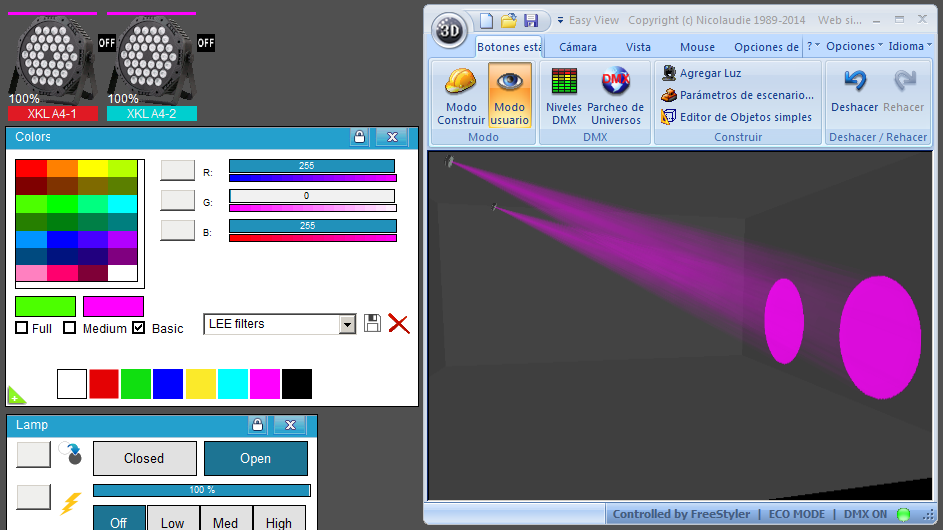 Esta Librería SSL2 está optimizada para trabajar con Magic 3d Easy View. Es decir para ver una representación 3D de las secuencias que estemos realizando con Freestyler, QLC+ o cualquier otro soft que se conecte con Magic 3d.