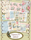 Create using this complete vintage ephemera kit! This printable kit has everything you need to make beautiful shabby cottage-style elements. Kit includes vintage wallpaper backgrounds, pockets, tags, tag bases, labels, border trims, ephemera such as butterflies, birds, florals, plus sentiments to finish off designs. More than enough backgrounds and epmemera to create many different projects.