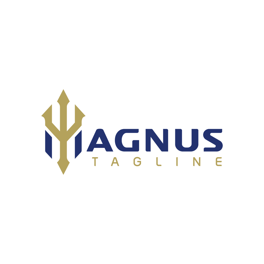 Letter M Trident Magnus Wordmark Logo for sale. Modern, simple and unique ready made Letter M Trident Magnus Wordmark Logo. This symbol is suitable for mariner, boat naming, clothing label, apparel brand, fashion, business consulting, heavy industry company, engineering and shipping. The design conveys ocean, great, tough, Poseidon, Neptune, Shiva, sea, marine and professional. The mark itself will looks nice as social media avatar and website or mobile icon. Source files are provided in vector PDF, EPS, AI and raster PNG.