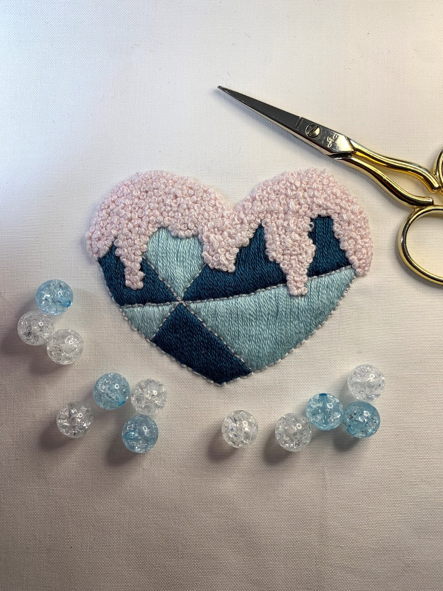 This digital file comes with information for making your own "Snow and Blood Heart" embroidery piece to embellish anything of your choice.