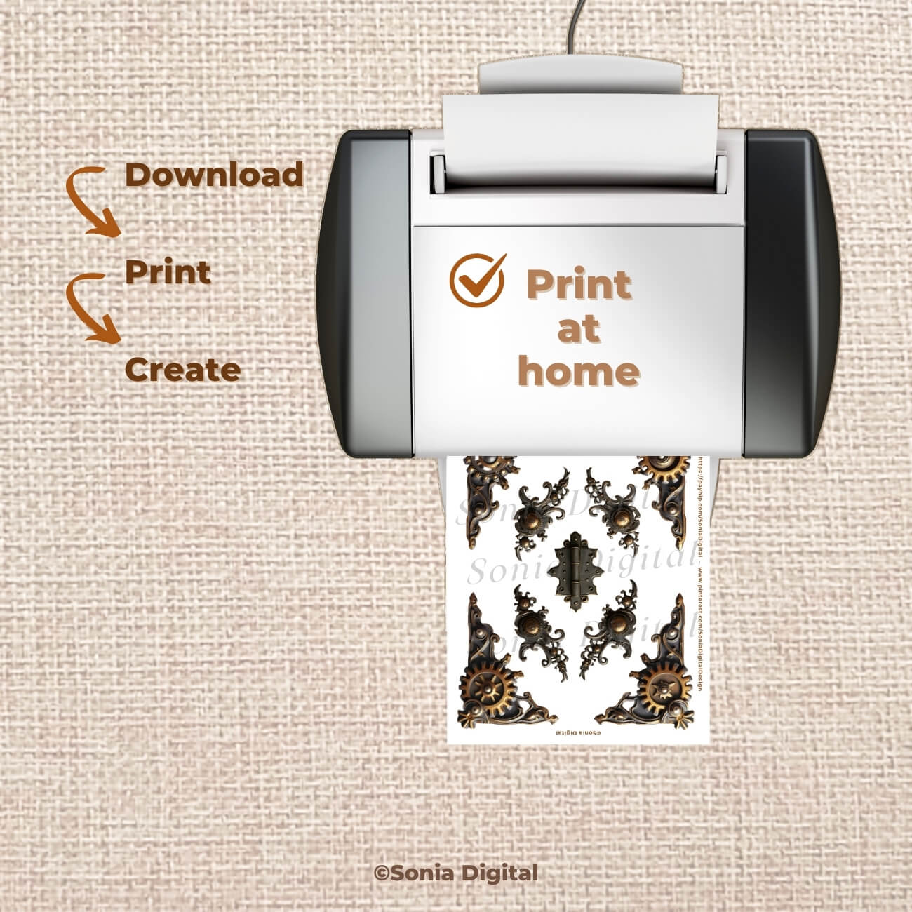 Perfect for DIY enthusiasts, this downloadable series features locks, keys, corners, and other elements, designed to mimic the look of real metal hardware. Ready to be printed, cut, and added to your artistic projects.