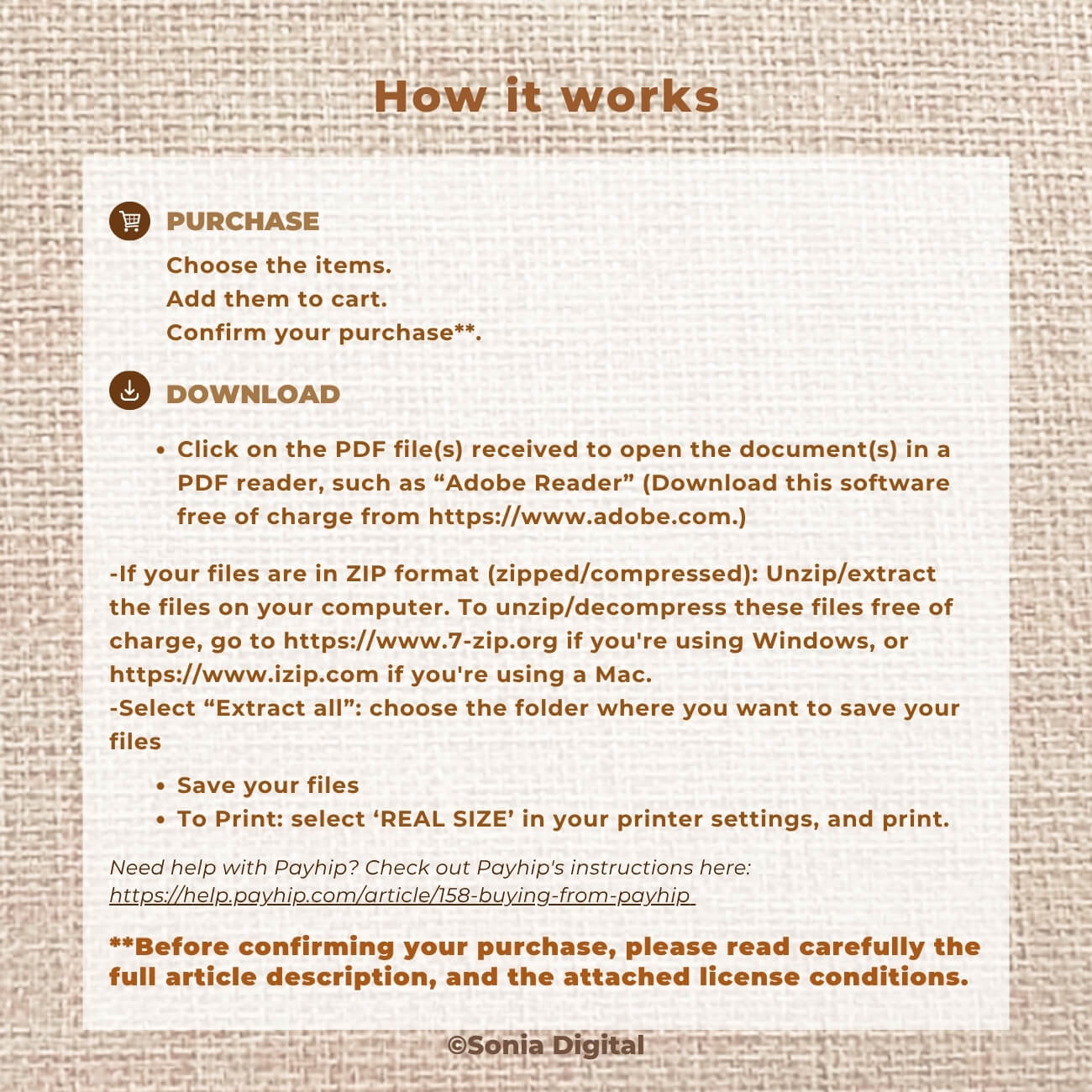 ▶️ Note: PDF ONLY, YOU Print. This is a DIGITAL PRODUCT and downloading is instantaneous. NO printed/physical product will be sent/shipped to you.