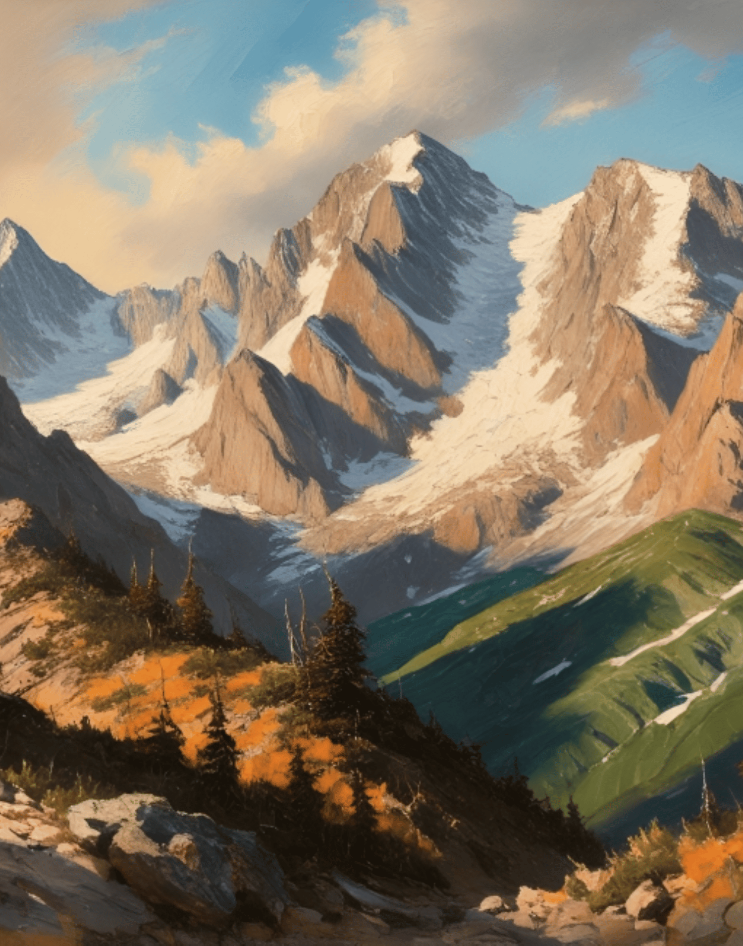 Mountain Landscape, Beautiful Valley Painting, Snow Covered Mountain, Mountain Wall Art, Vintage Landscape, Nostalgic Nature, Cool Nature, Rustic natural Landscape, Painting.