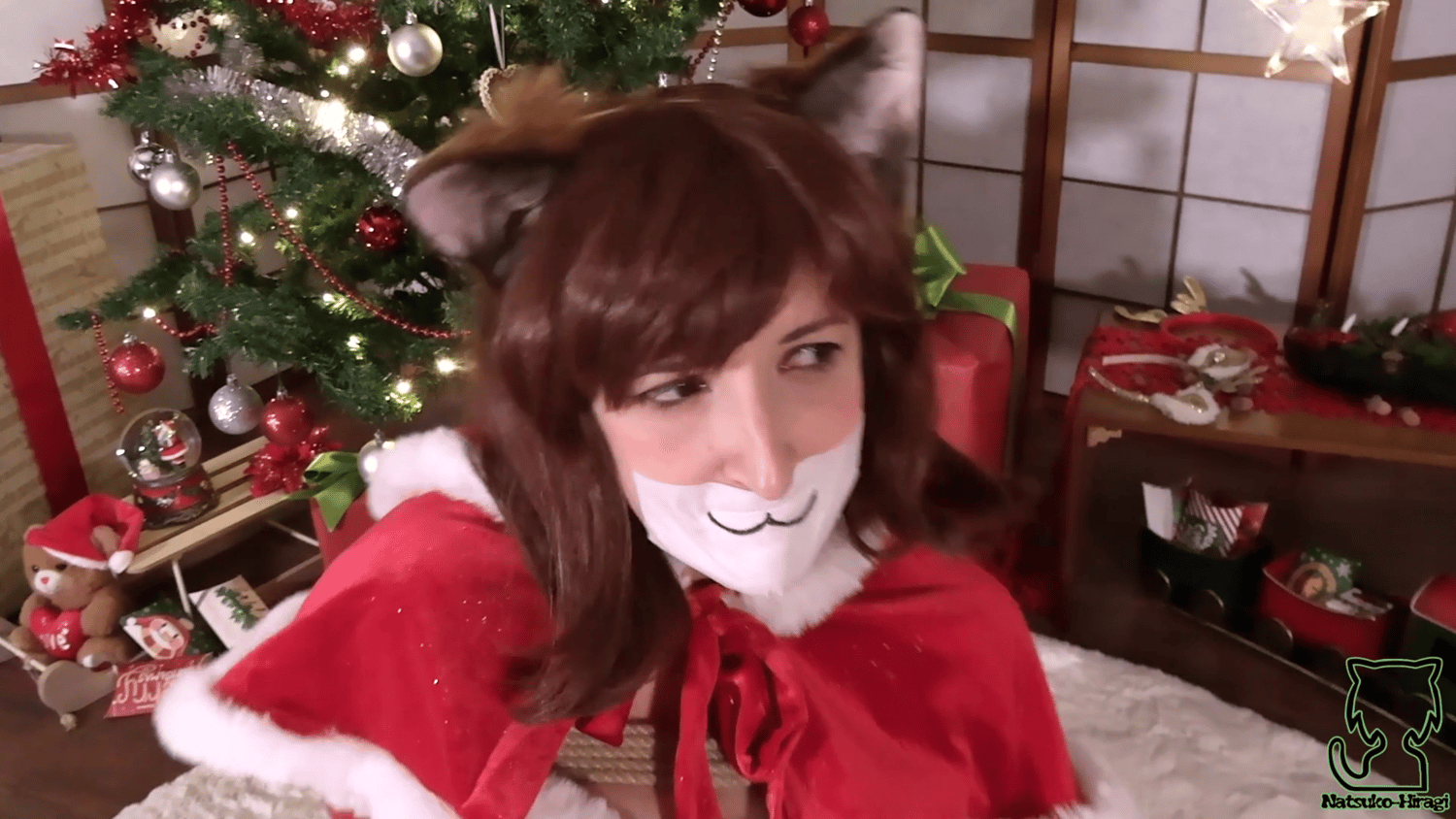 Video includes: Fixomullgag, rope bound, socked feet, christmas dress, stuffed in a sack, tied up inside a sack, sack bondage, struggling, moaning, gagtalk