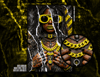 ✦ Fragmentados / FR4G.008 • Retrato digital hiperrealista estilo cyberpunk industrial con estética dark grunge y dominante amarillo neón. Mujer futurista con gafas tácticas, labios gráficos, cadenas metálicas y textura 3D ultradetallada. Composición con efecto rasgado y atmósfera distópica de alto contraste. Arte contemporáneo impactante, ideal para amantes del sci-fi urbano y la moda post-apocalíptica.