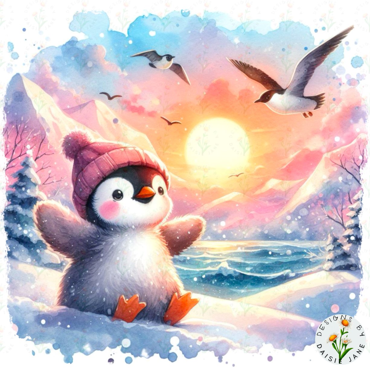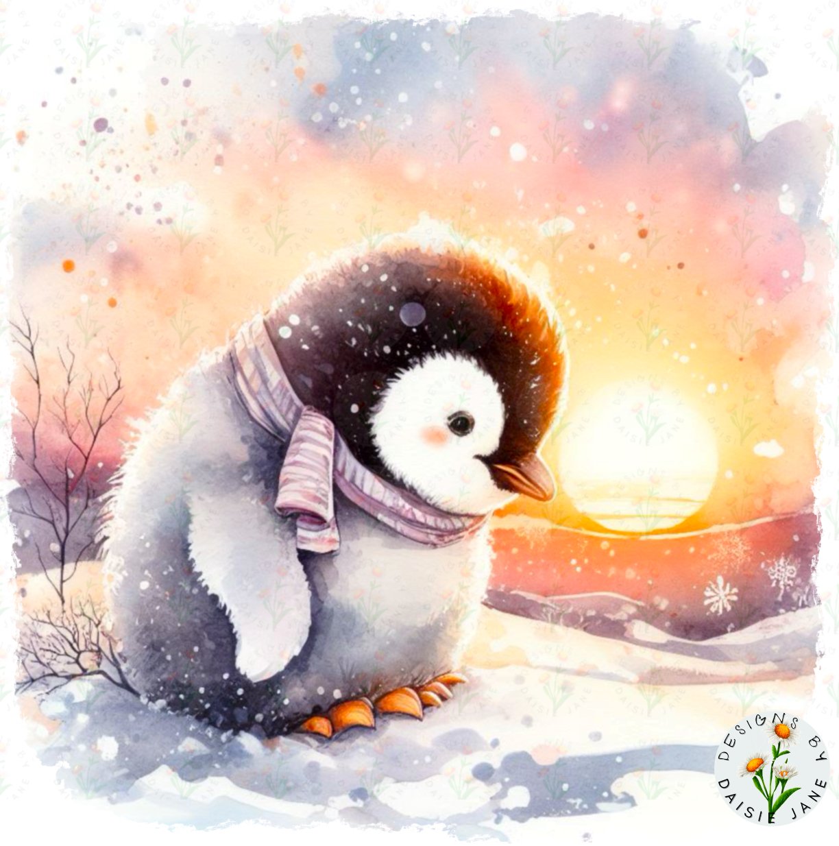 BUNDLE Of Cute Sunset Baby Penguins. 4 Files