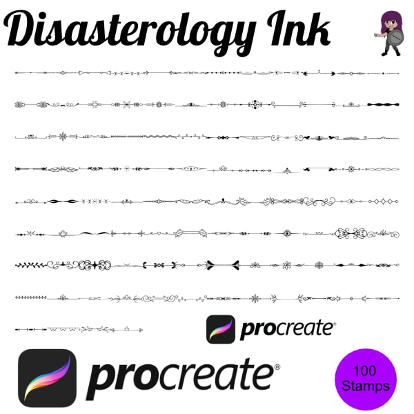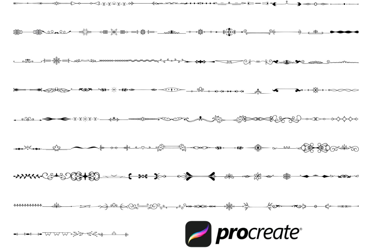 Page Text Divider Borders Set 1 Procreate Brush Stamps, 100 Dividers