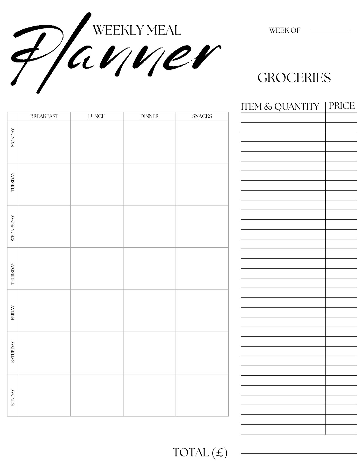 Digital Weekly Meal Prep Template- Minimalist PDF