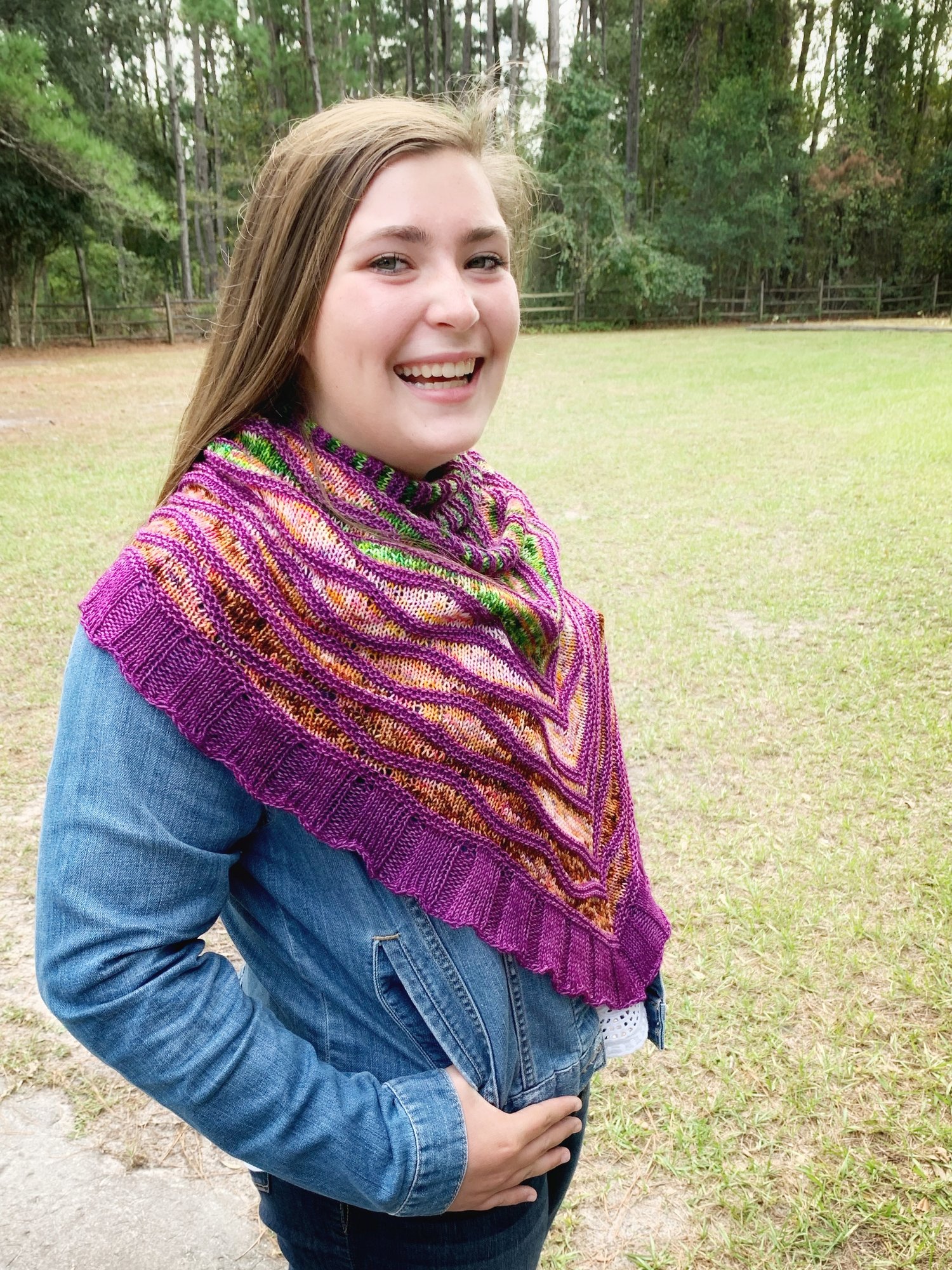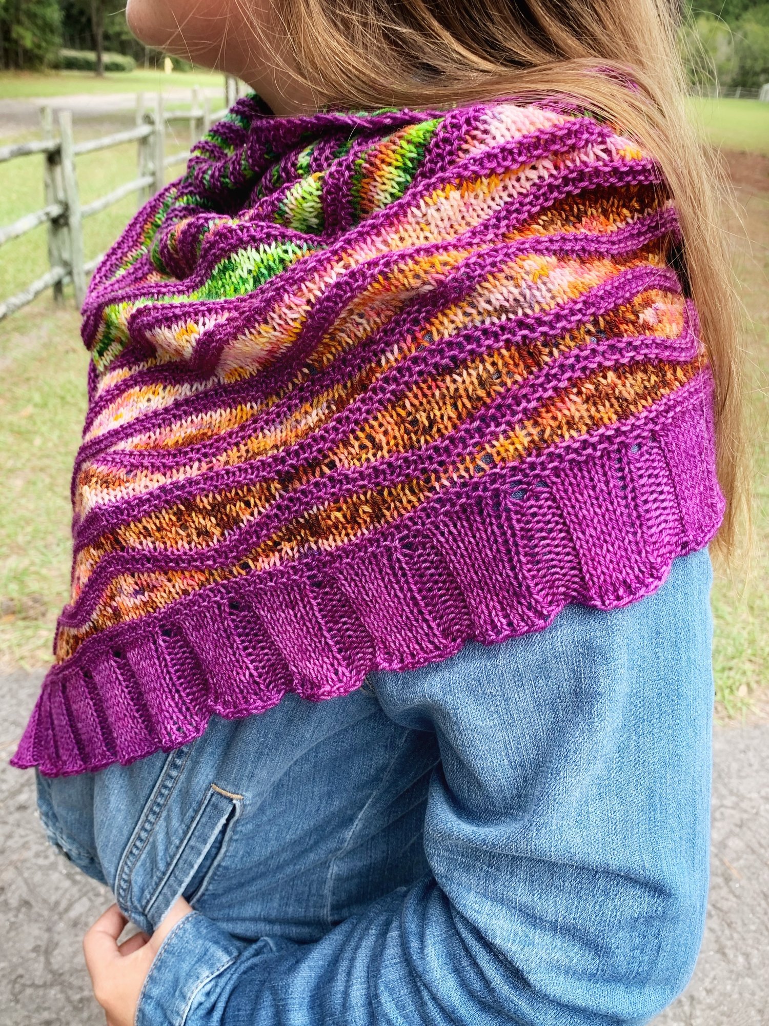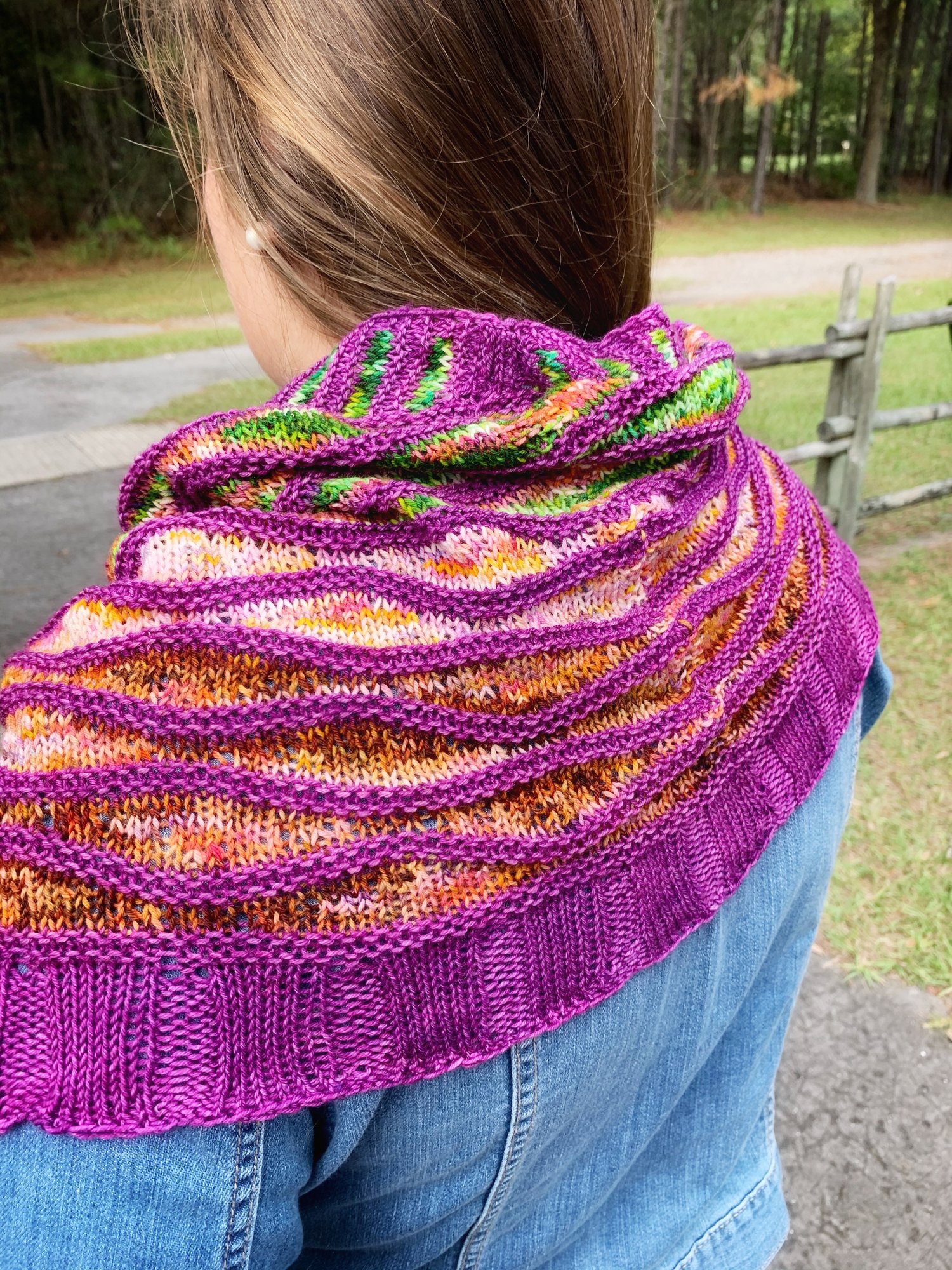 Clytie is a top-down cowlette that starts with a sideways striped triangle. Pick up some stitches and bam! You’ve started your cowlette that you can finish up all in the round. The German short rows are my favorite and deceptively easy to work. A simple pleated edge finishes off this generous cowlette that you will love wearing!
