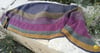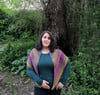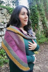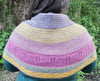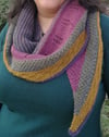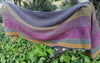 Each color has its moment to blend with another shade but also chance to stand alone to give a balanced color rich result. The shape is formed initially by a swift increase from 5 stitches by way of KFB increases and then at each end of the shawl.I have worked this construction for this shawl as an alternative to working a garter tab start. With its simple construction and repeated stitch patterns it makes for an enjoyable play with color and textures