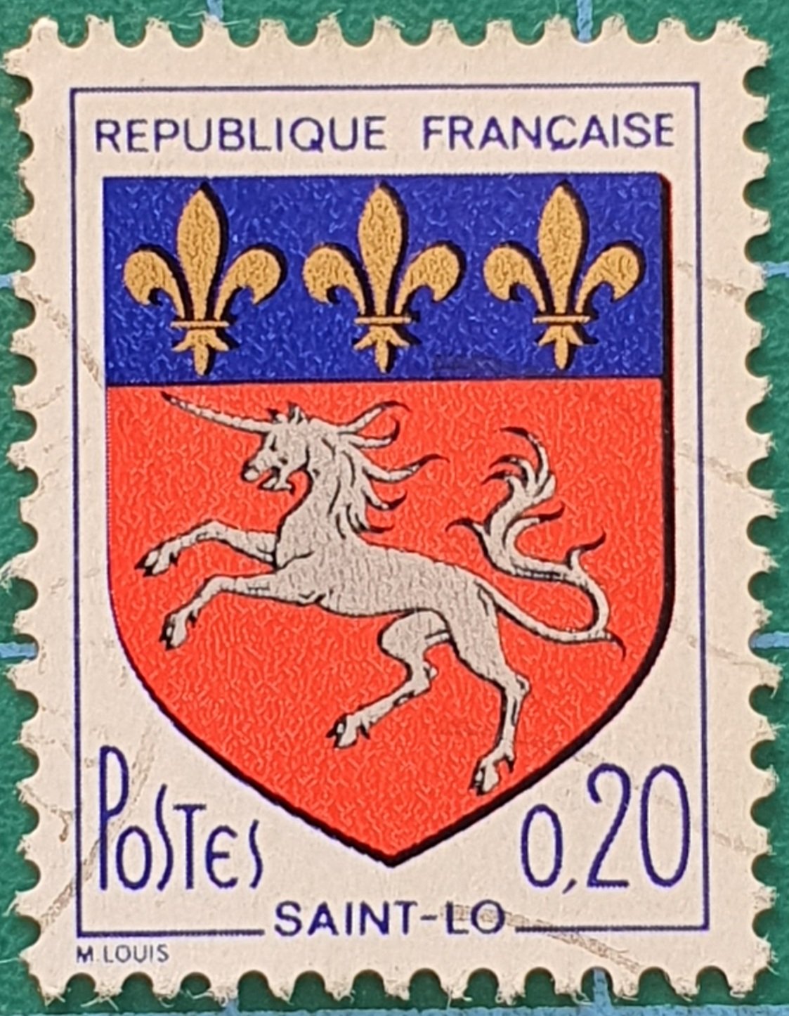 Ficha filatélica en formato PDF imprimible correspondiente al sello emitido en Francia en 1966, dedicado al Escudo de Saint‑Lô.